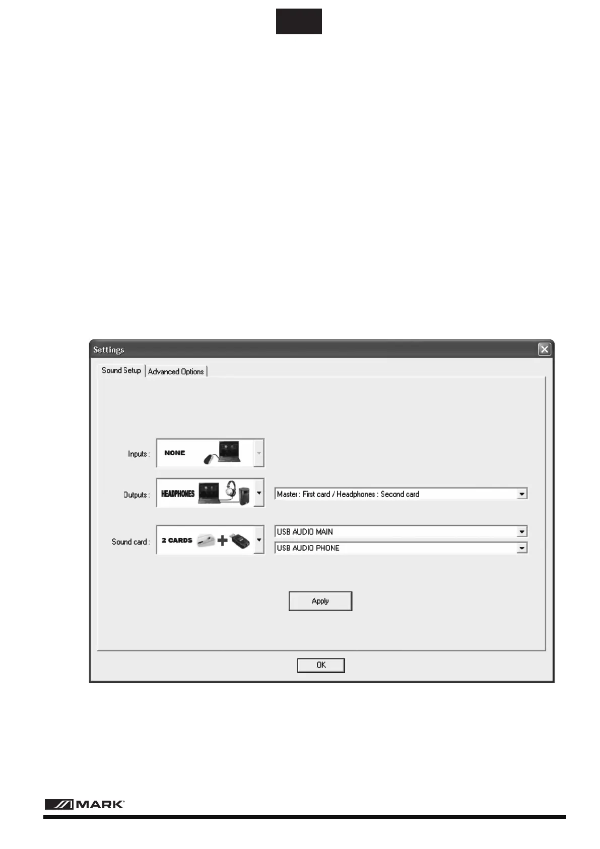 2. En la pestaña Sound card, seleccione la configuración HEADPHONES. Los 2 canales de salida master y los