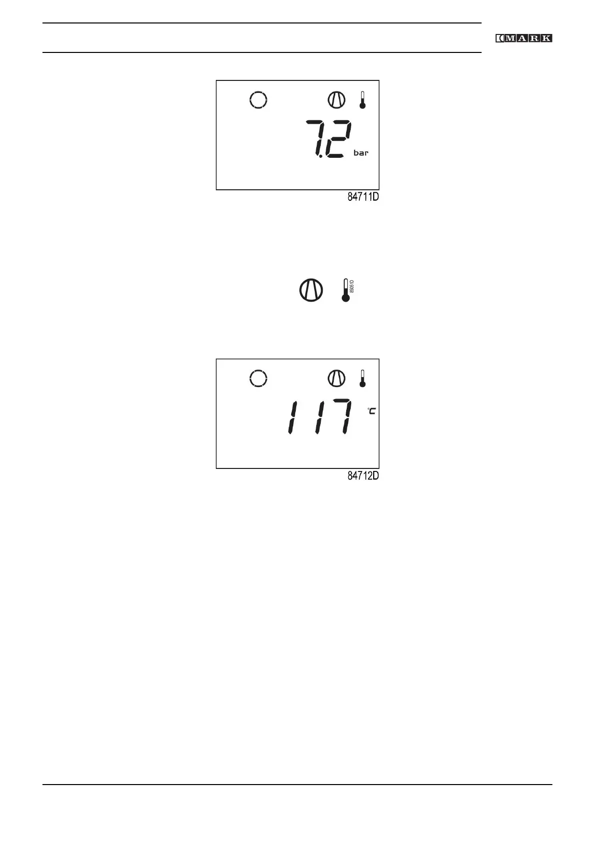 The screen shows that the temperature at the outlet of the compressor element is 117 ˚C.