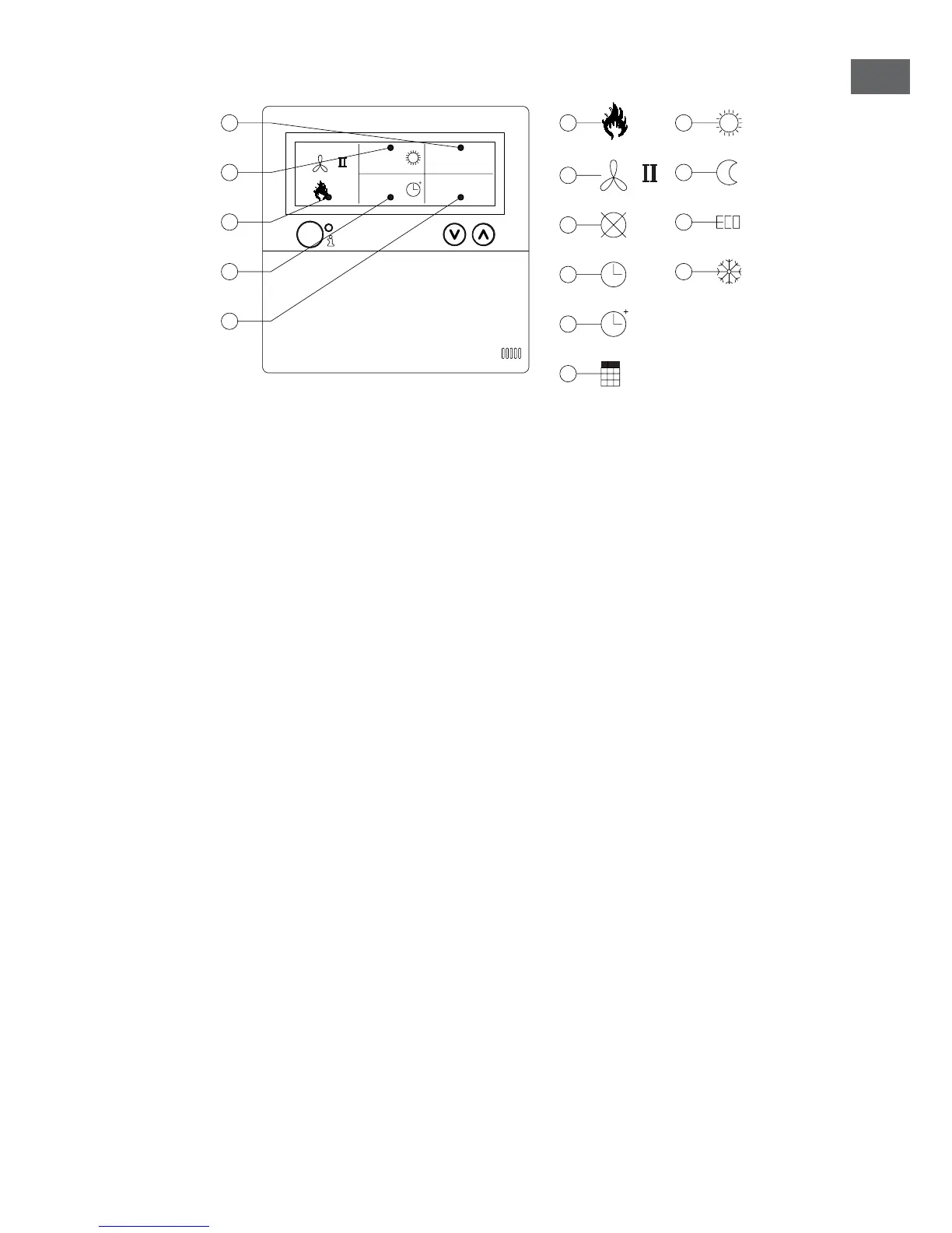 Displays the mode of operation (DAY, NIGHT, ECO, FROST PROTECTION)