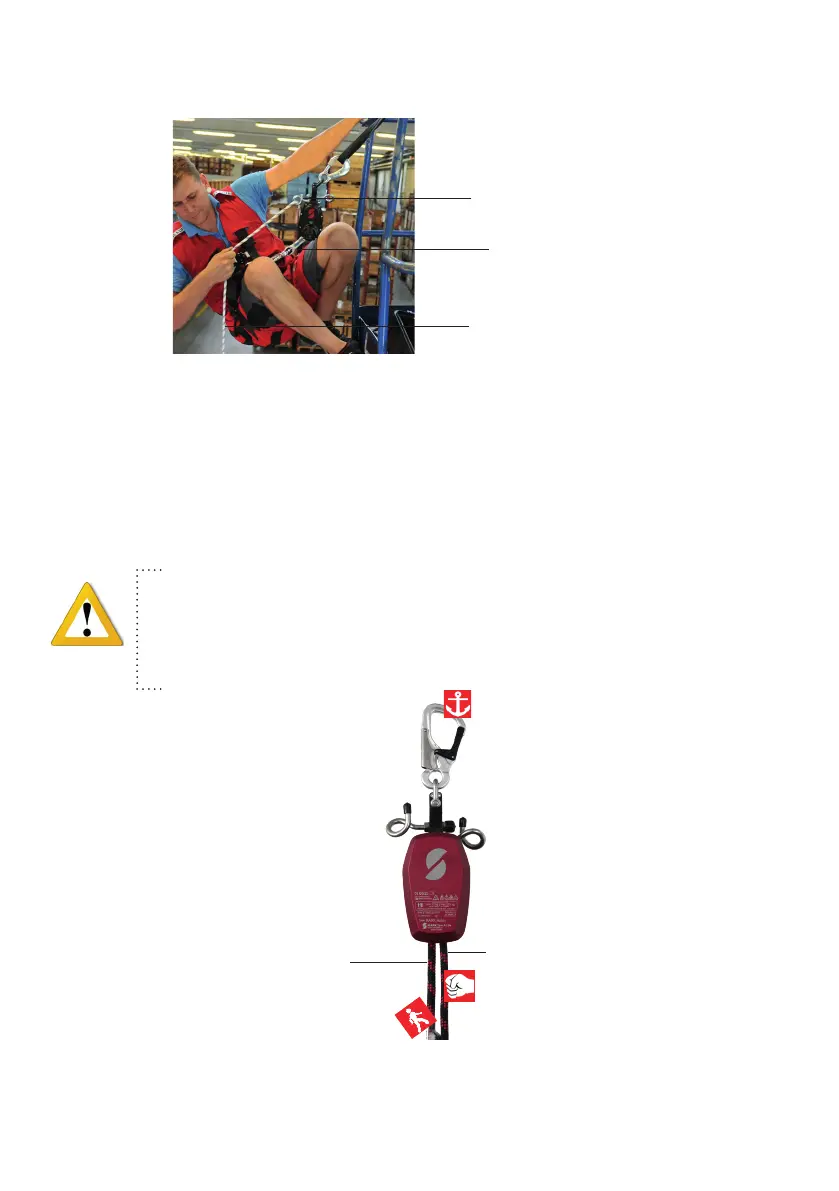 hängt) durch die Augenschrauben geführt, kommt es zu einem Stillstand im Abseil-