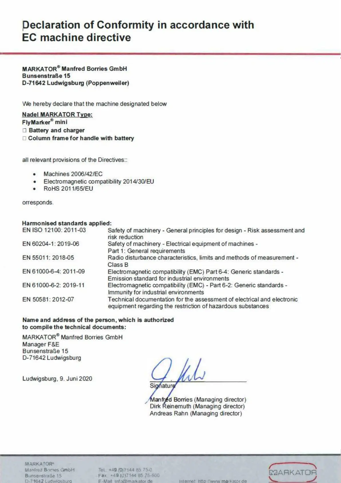 Markator FlyMarker mini 85/45 plus - Declaration of Conformity