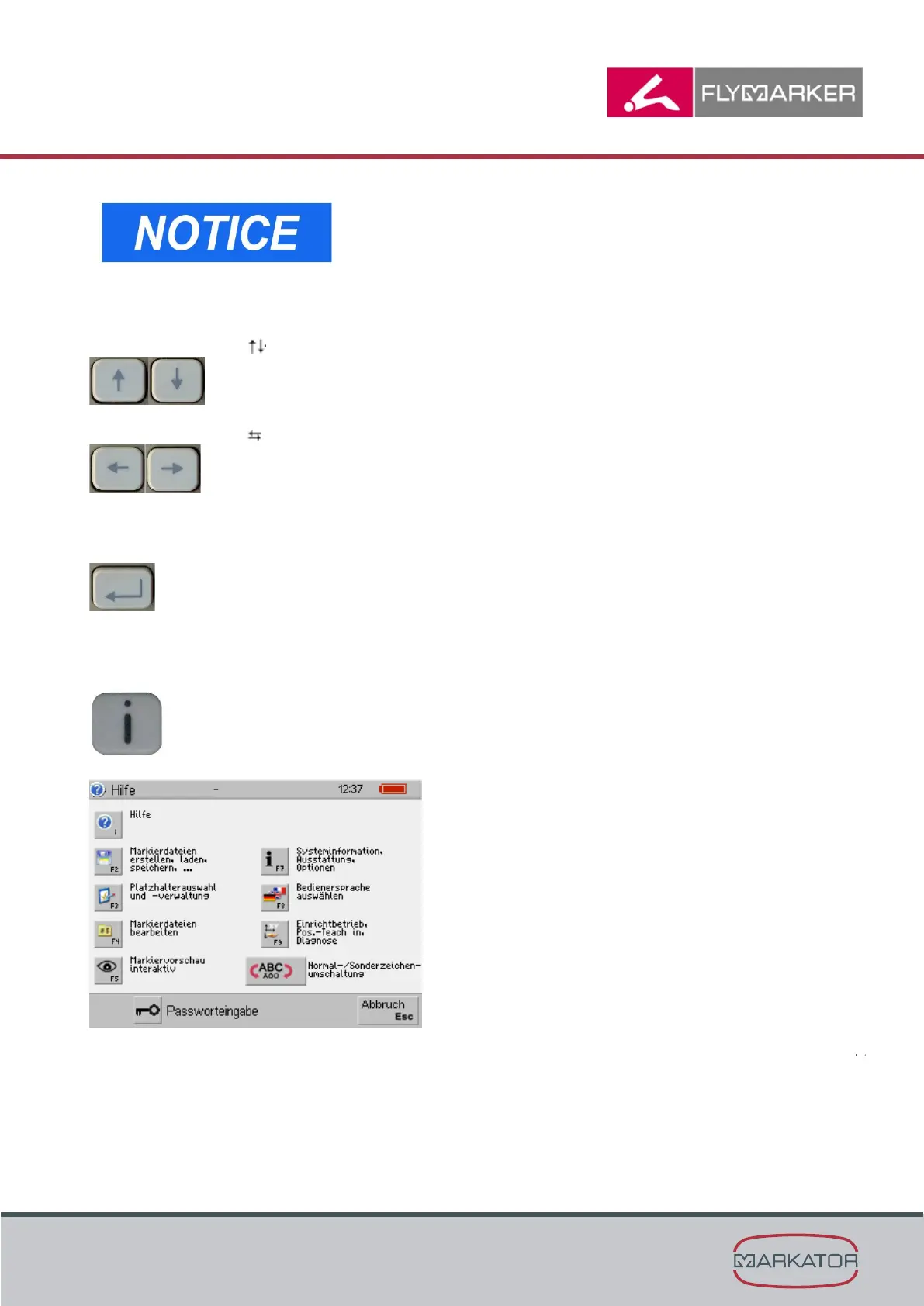 When the i key is pressed, the help window comes up with notes on the key function in the