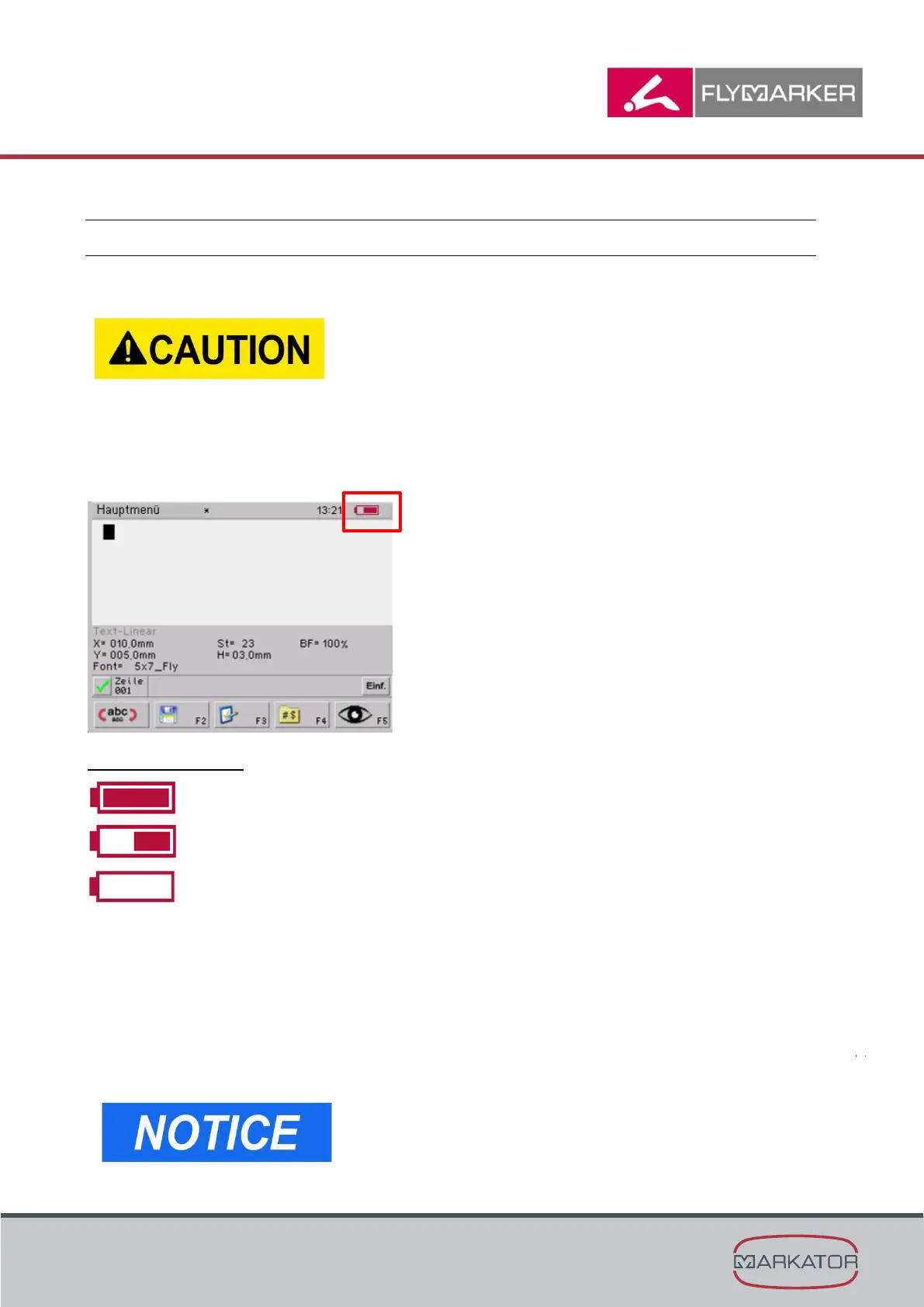 If electric tension is lower than 18.0 V, FlyMarker mini shuts