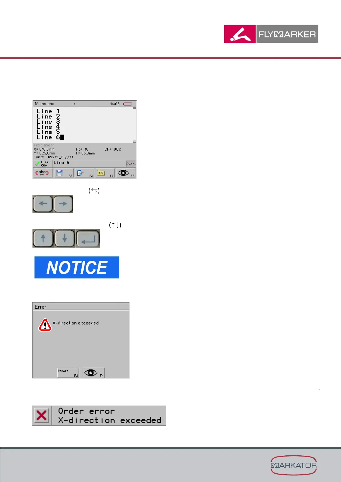If the permissible marking range’s limit is exceeded, an error message appears.
