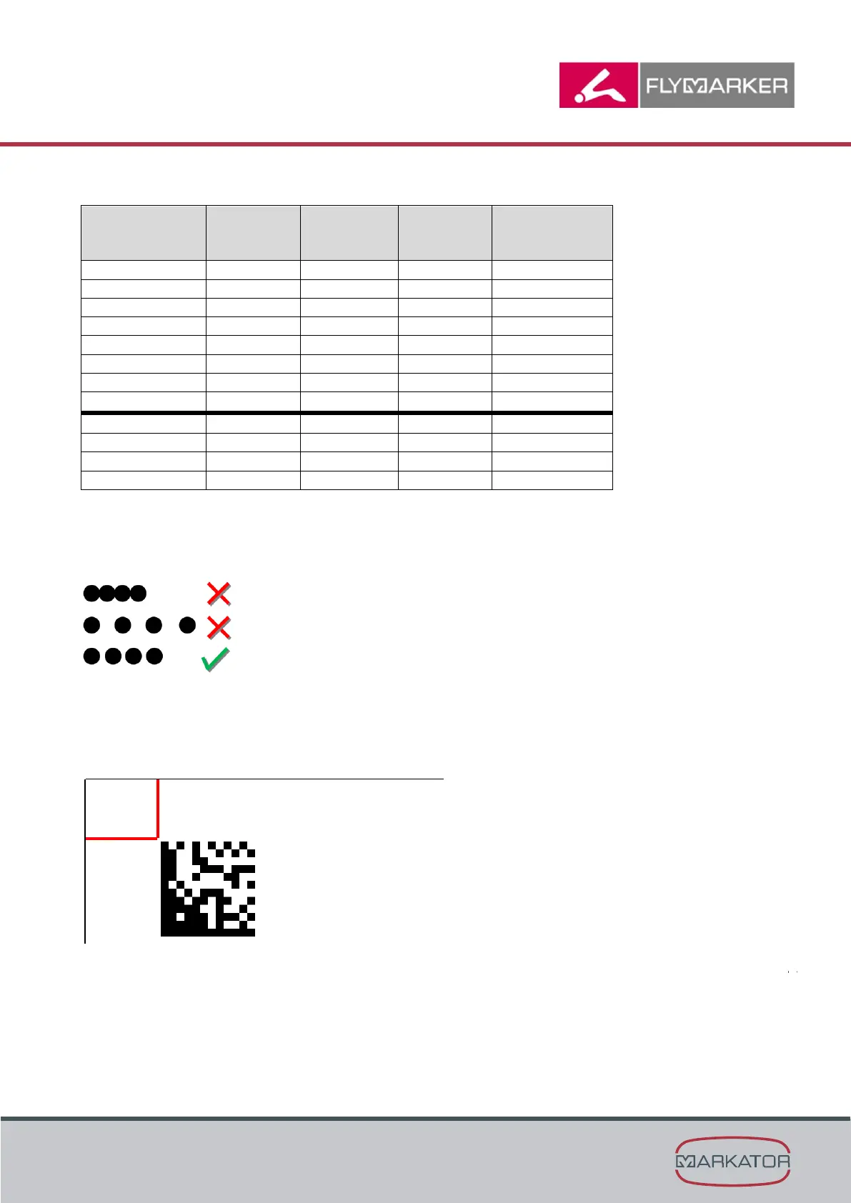 Size and force must be specified so that the DMC is optimally legible. This depends on the