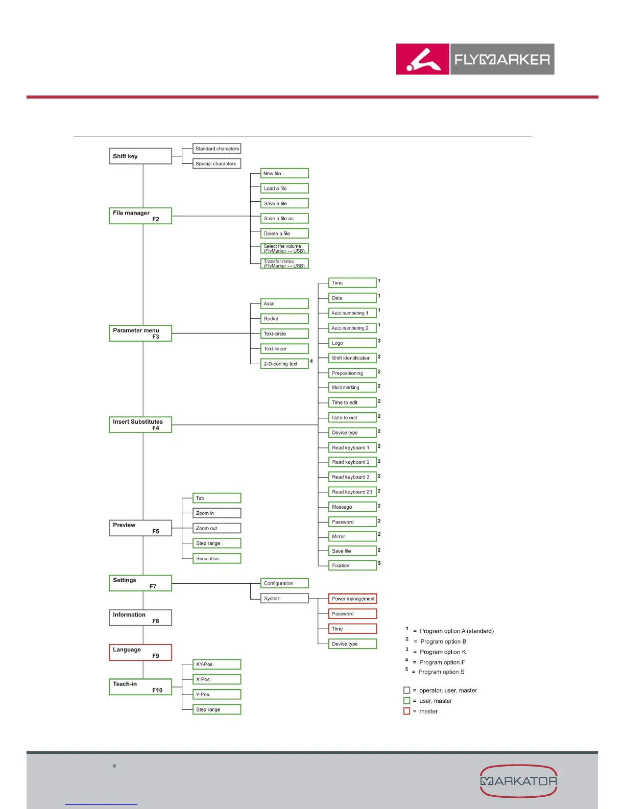 Markator FlyMarker PRO - Menu Structure; File Manager Menu; Parameter Menu Options; Preview Menu