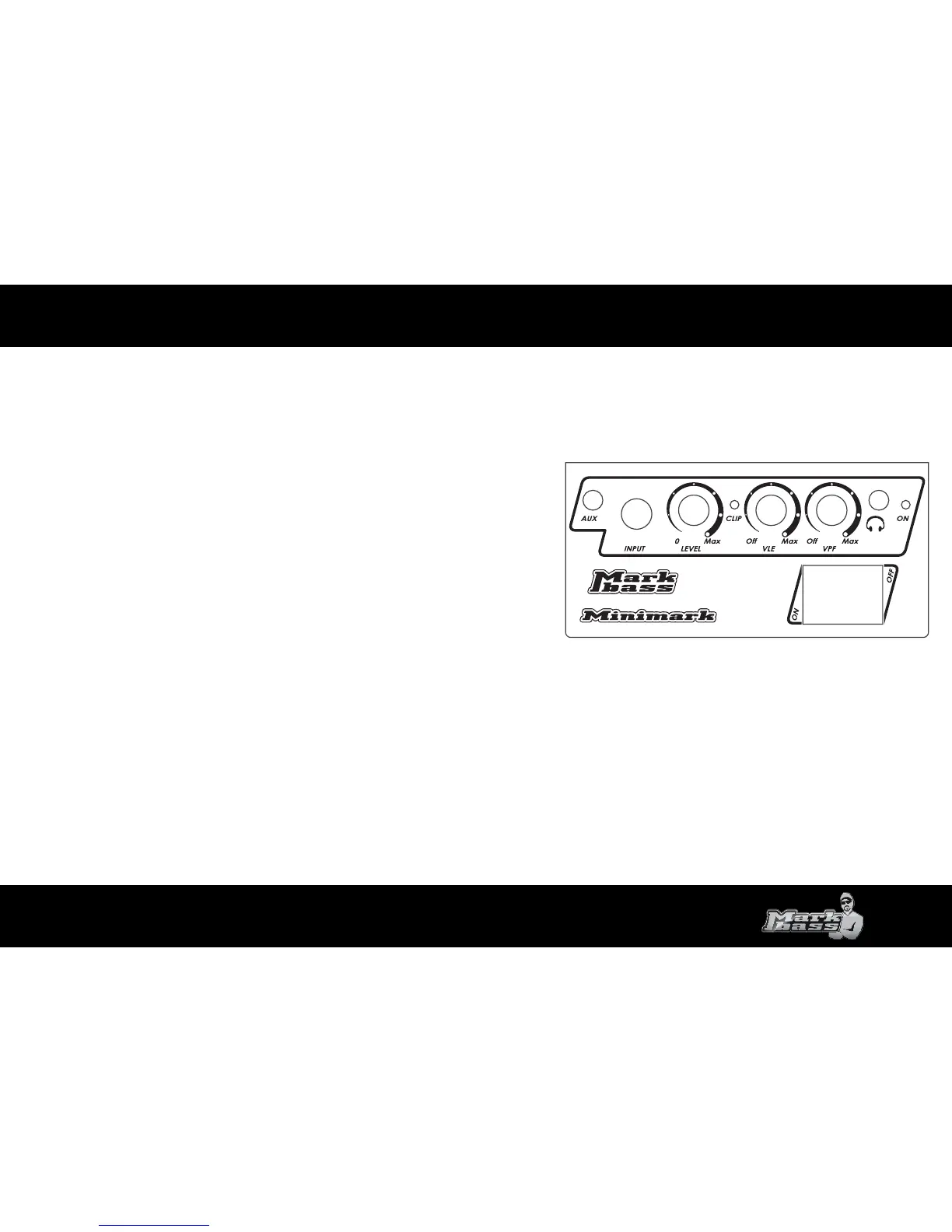 For quiet practicing, plug headphones into this mini plug (1/8”) jack. If you plug in headphones, the amp’s speaker will stay on unless you turn it o using the switch (11) on the rear panel. To control the level to your