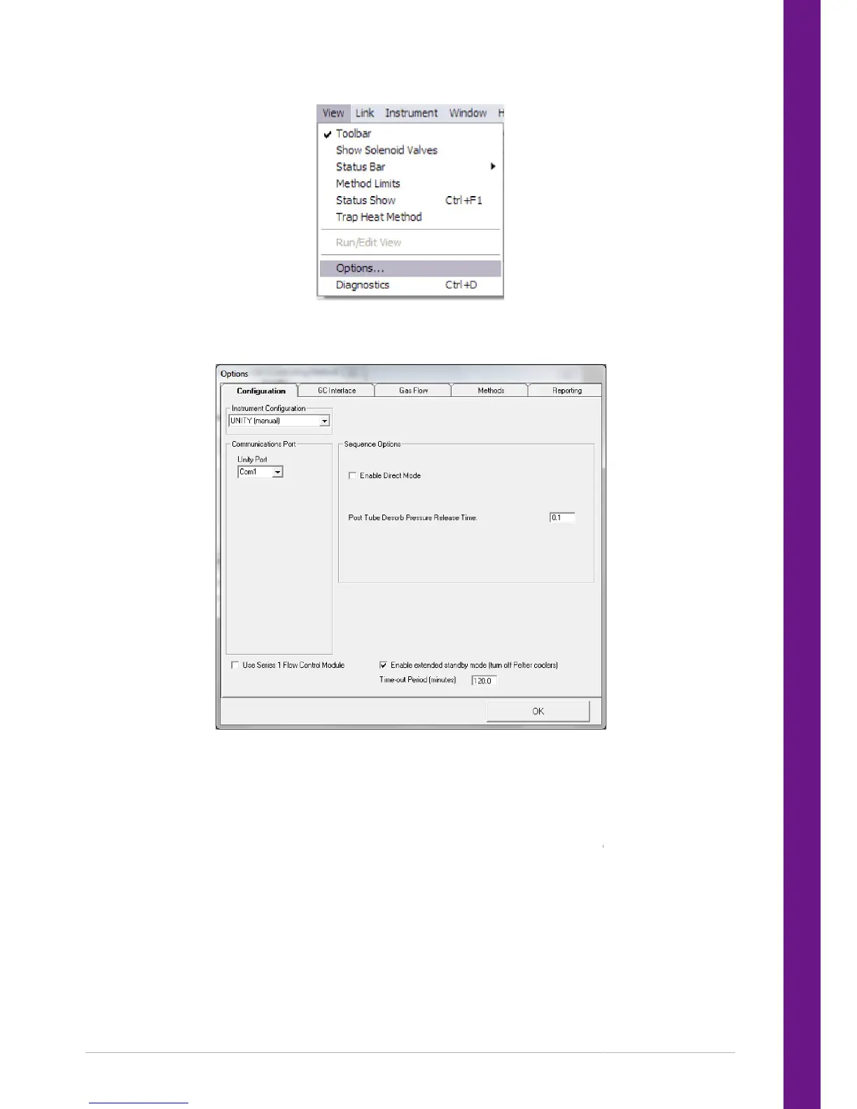 For UNITY 2 operation the Instrument Configuration will be set to UNITY (manual).
