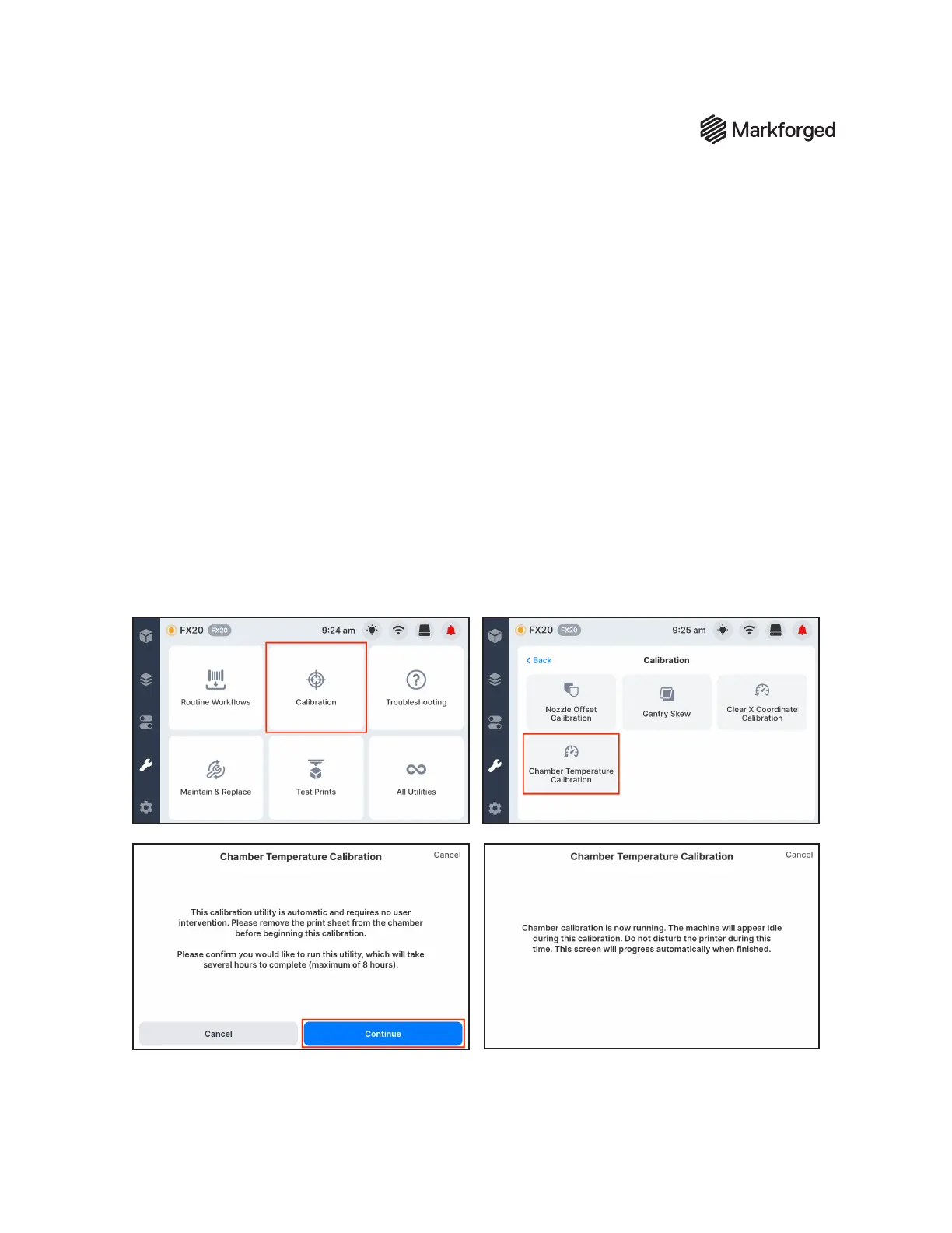 The Chamber Temperature Calibration utility takes 3-8 hours to complete. If your printer receives