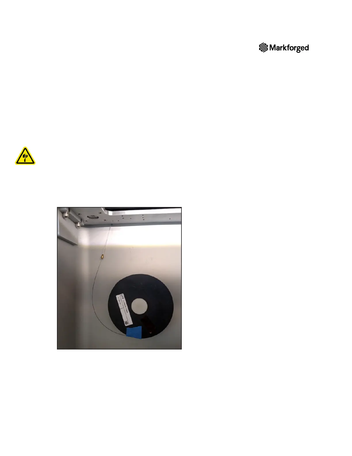 Note: To avoid bending the material, tape it to the inside of the spool wall.