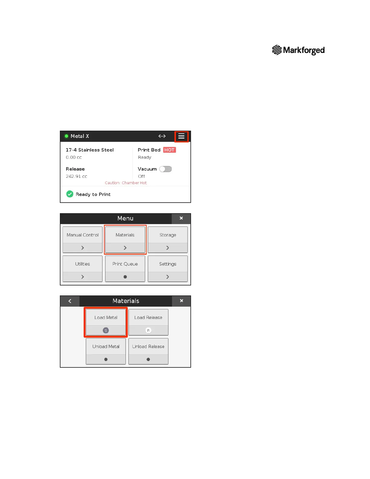 4. Select Load Metal to begin the metal-loading routine.
