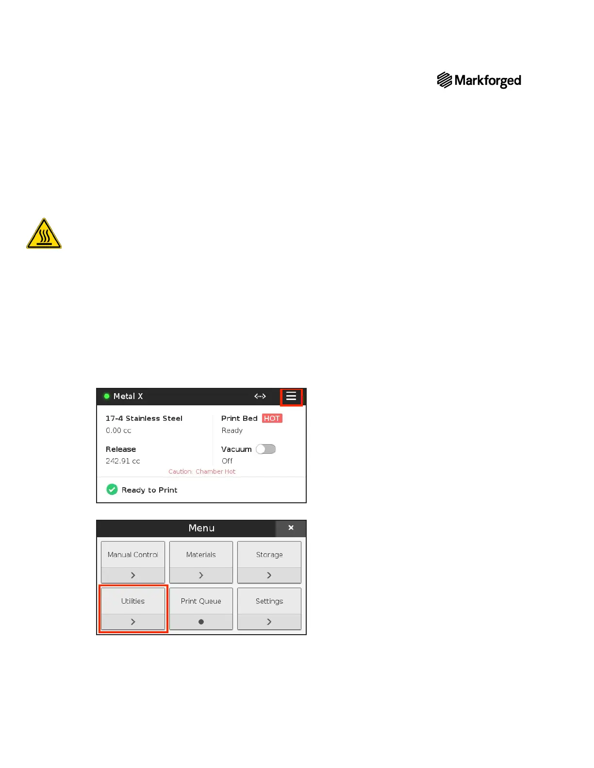 Warning:The nozzles and extruded material will become hot during this test. Be careful not to touch