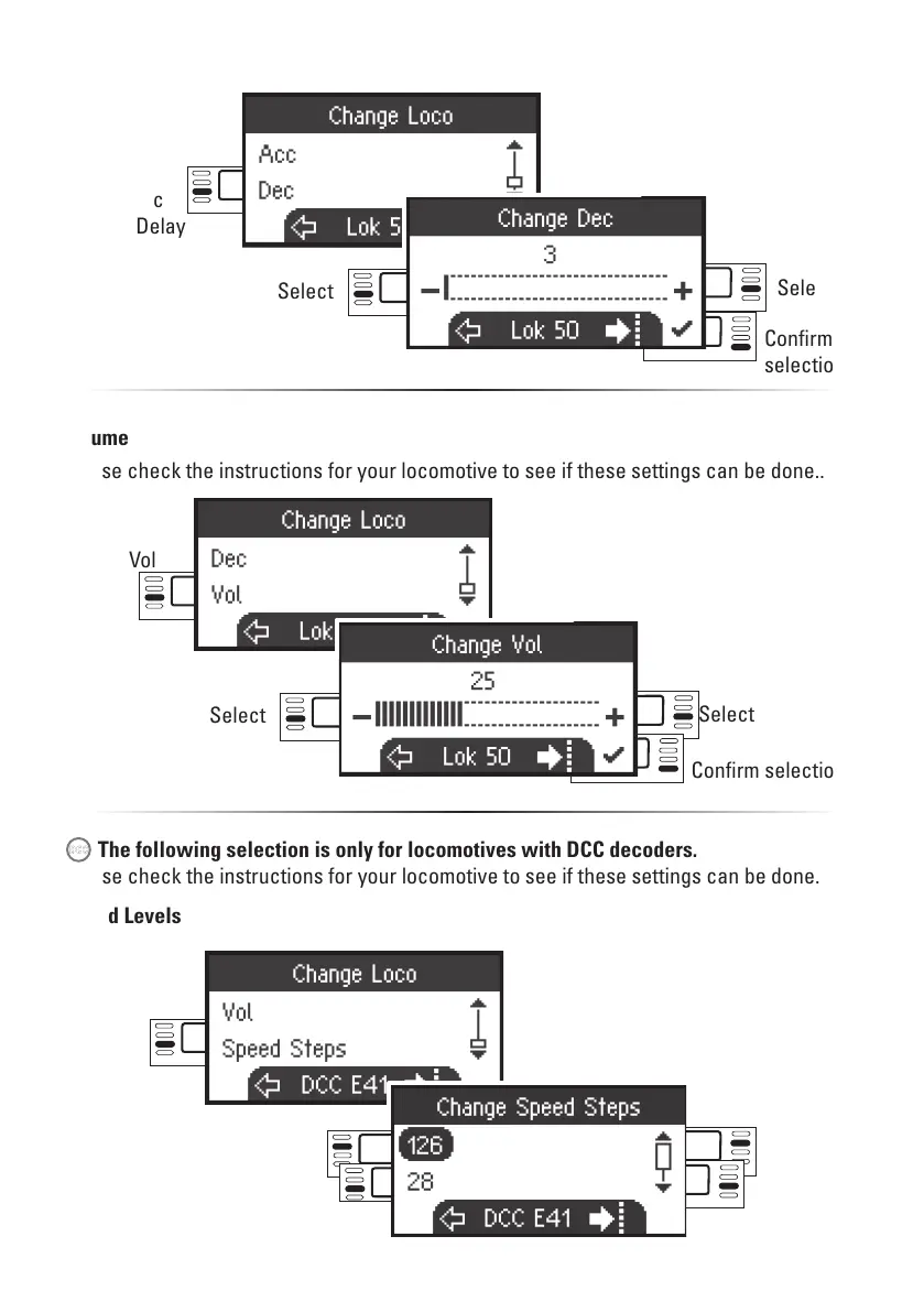 The following selection is only for locomotives with DCC decoders.