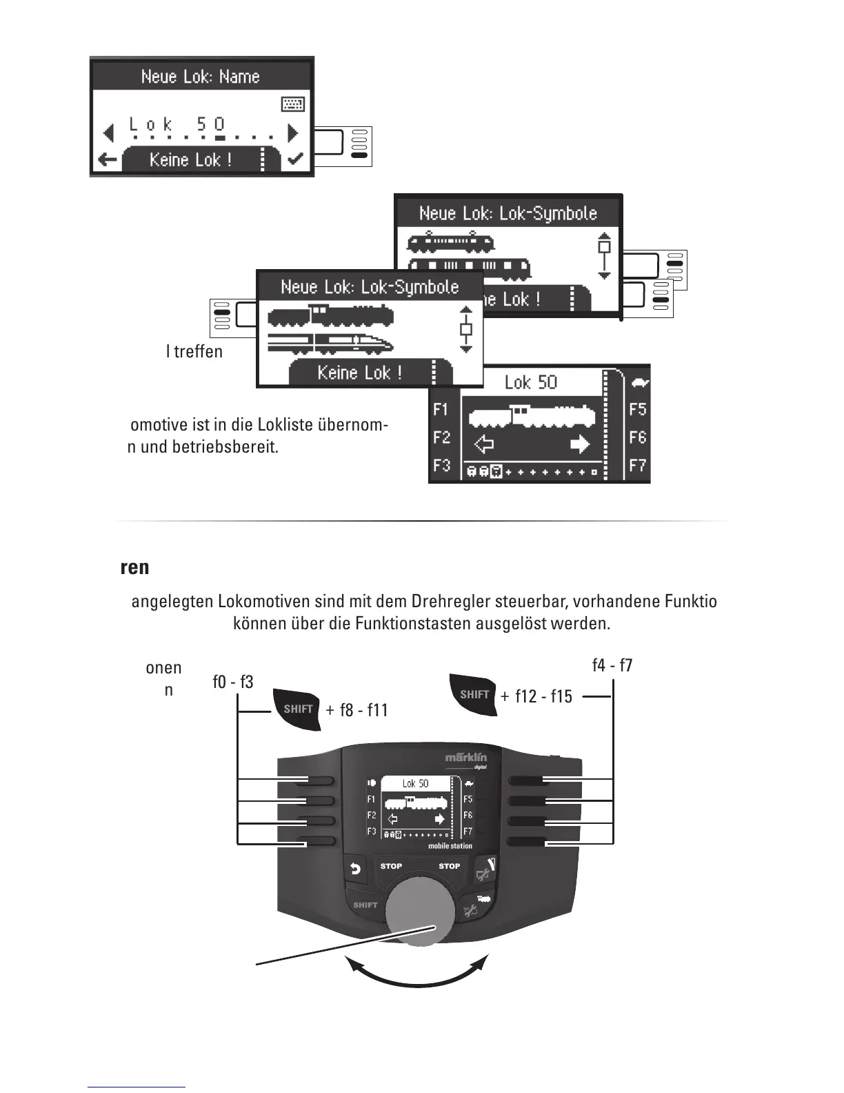 Die angelegten Lokomotiven sind mit dem Drehregler steuerbar, vorhandene Funktionen