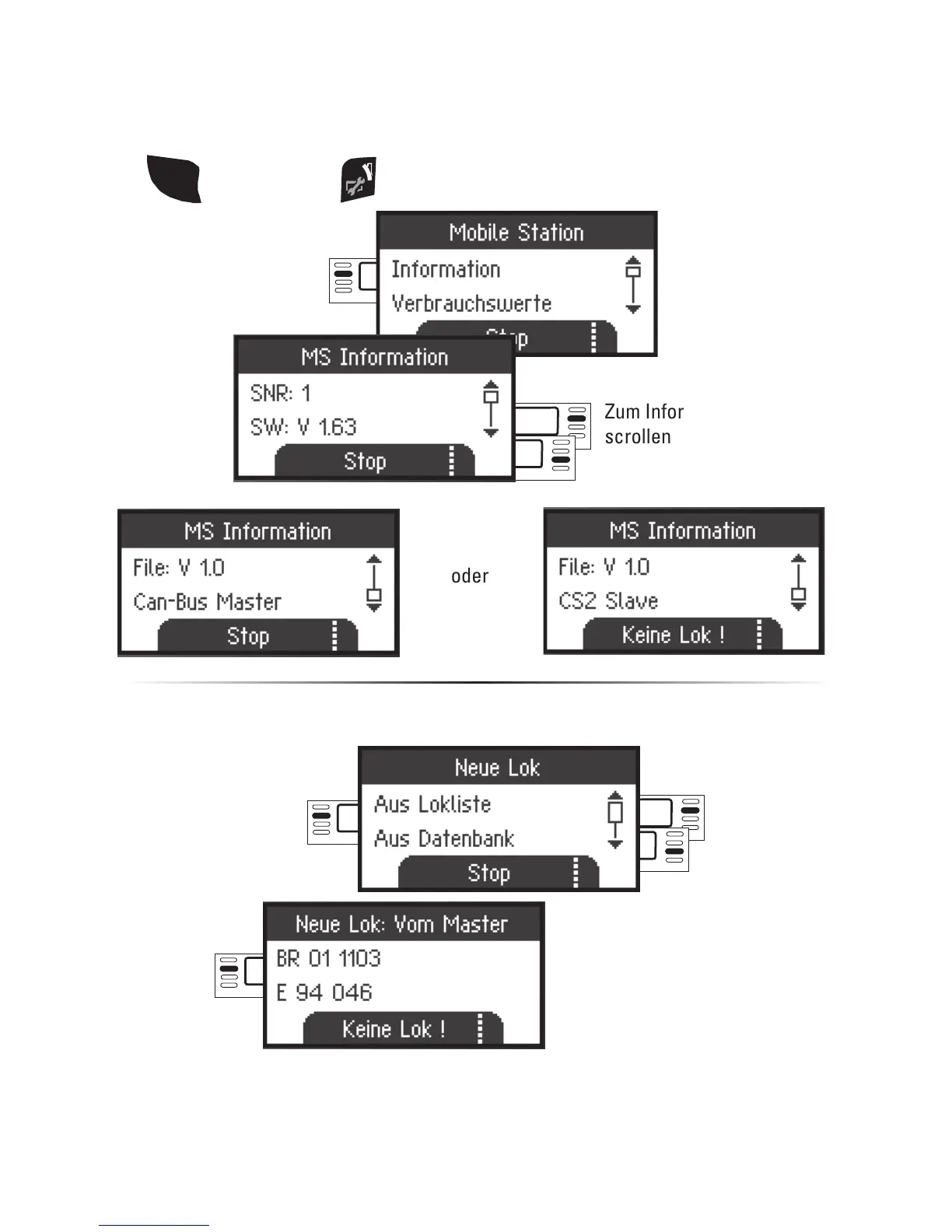 Es ist mit der „Slave“ Mobile Station möglich, Lokomotiven aus der Datenbank bzw.