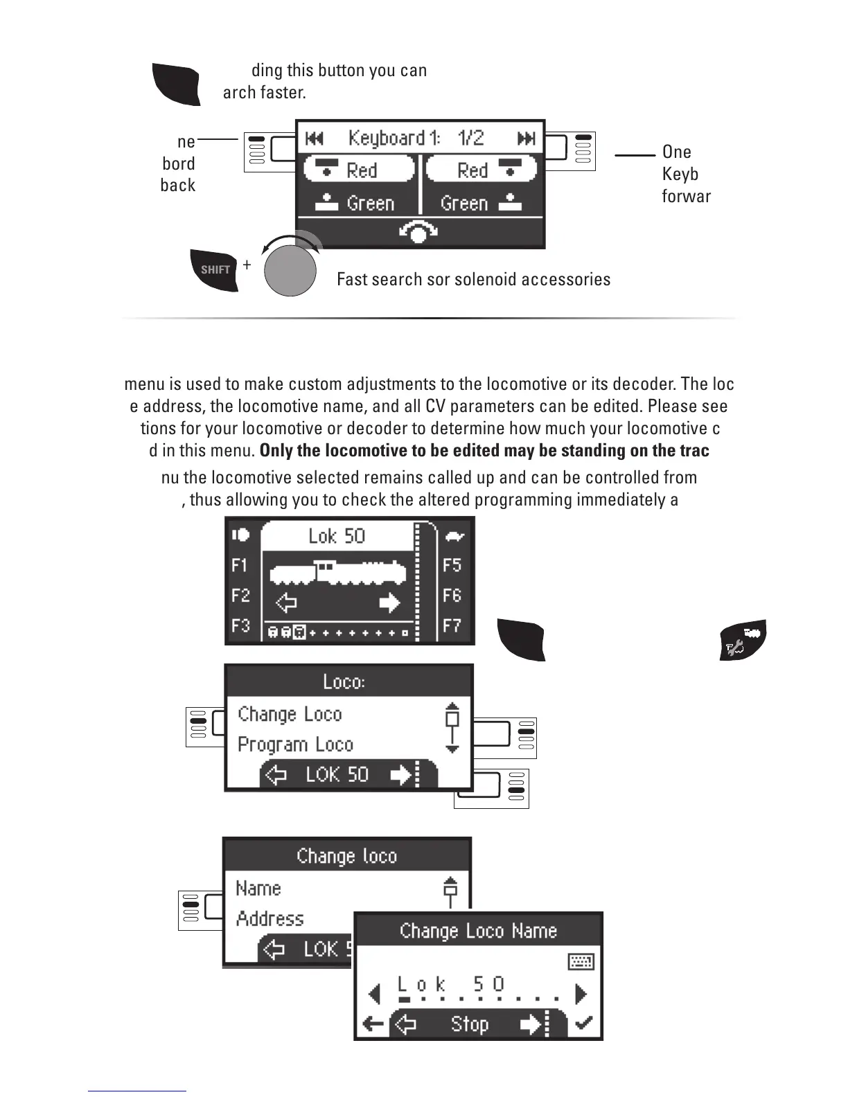 be edited in this menu. Only the locomotive to be edited may be standing on the track.