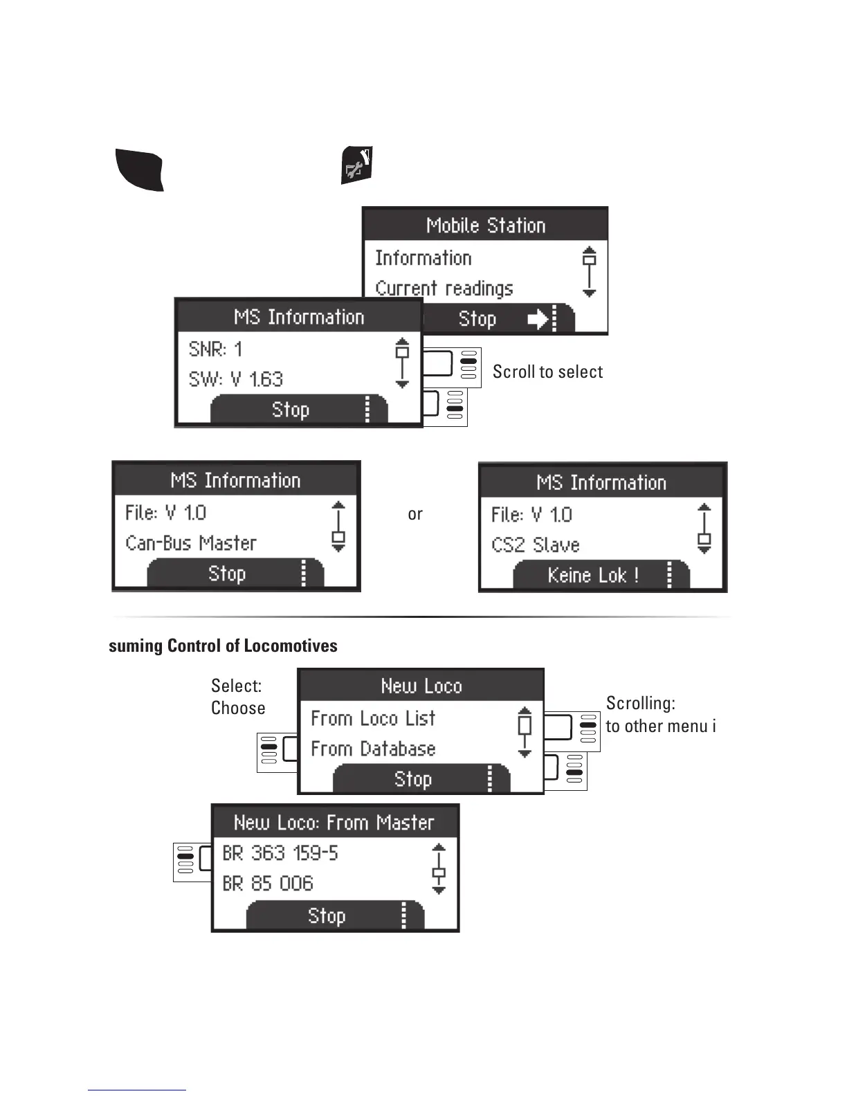 It is possible with the “Slave” Mobile Station to enter locomotives from the database or
