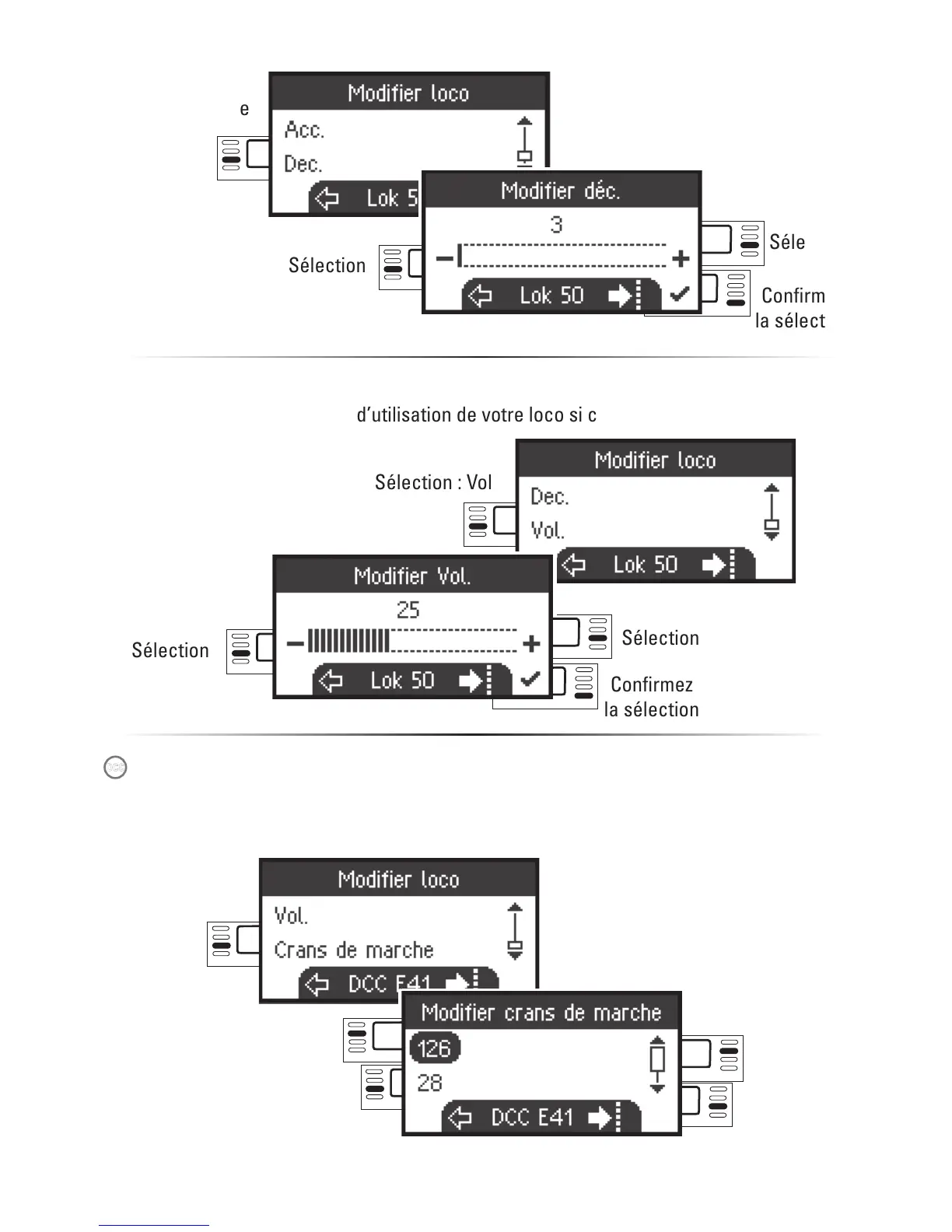 La sélection suivante est possible uniquement pour les locomotives dotées d’un