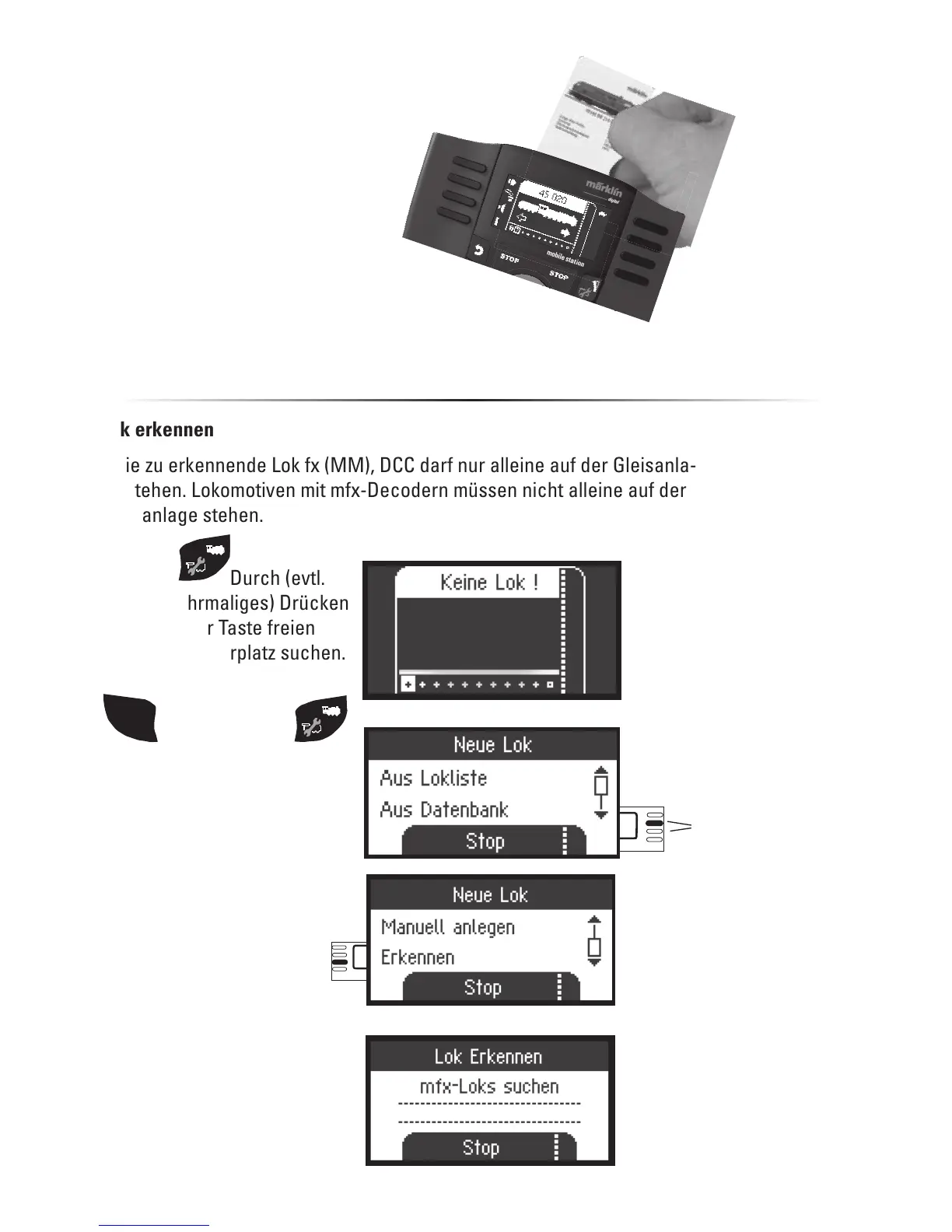 Hinweis: Ist der interne Lokspeicher voll, muss vor Aufnahme einer neuen Lok ein Spei-