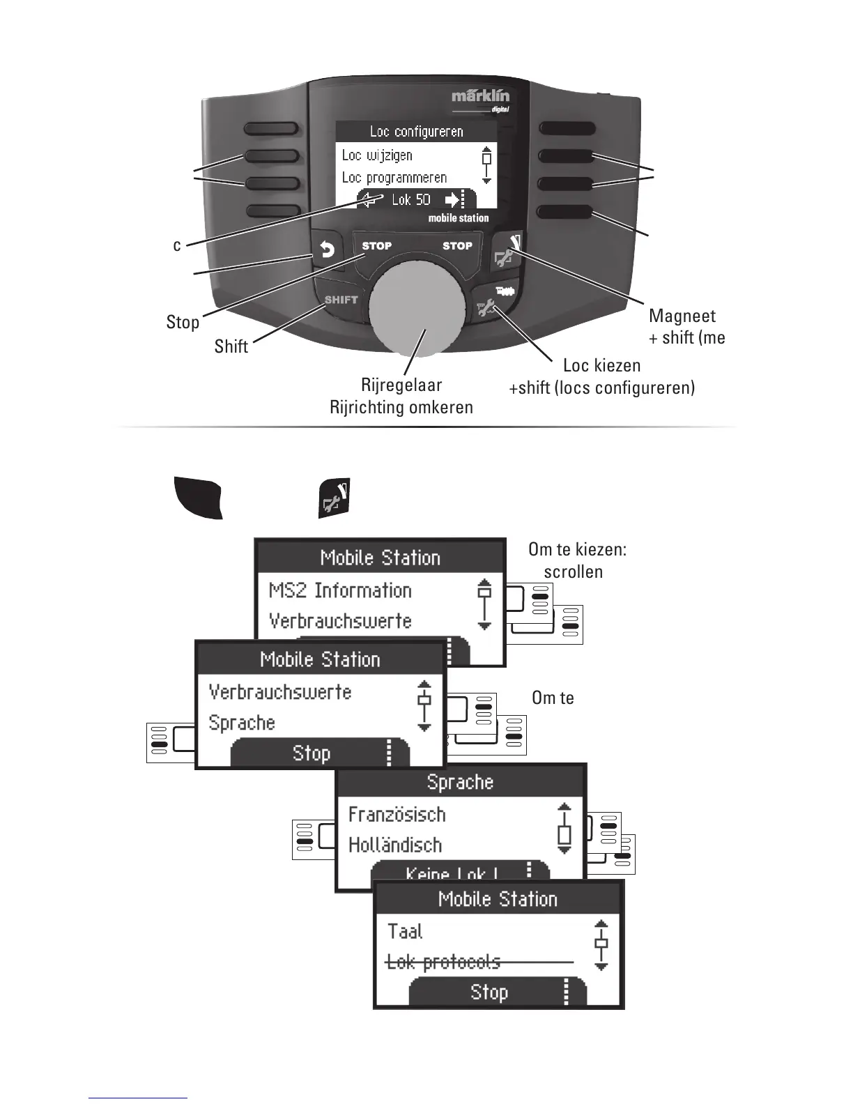 Marklin Digital 60657 - Menu, Toetsfuncties; Taalkeuze