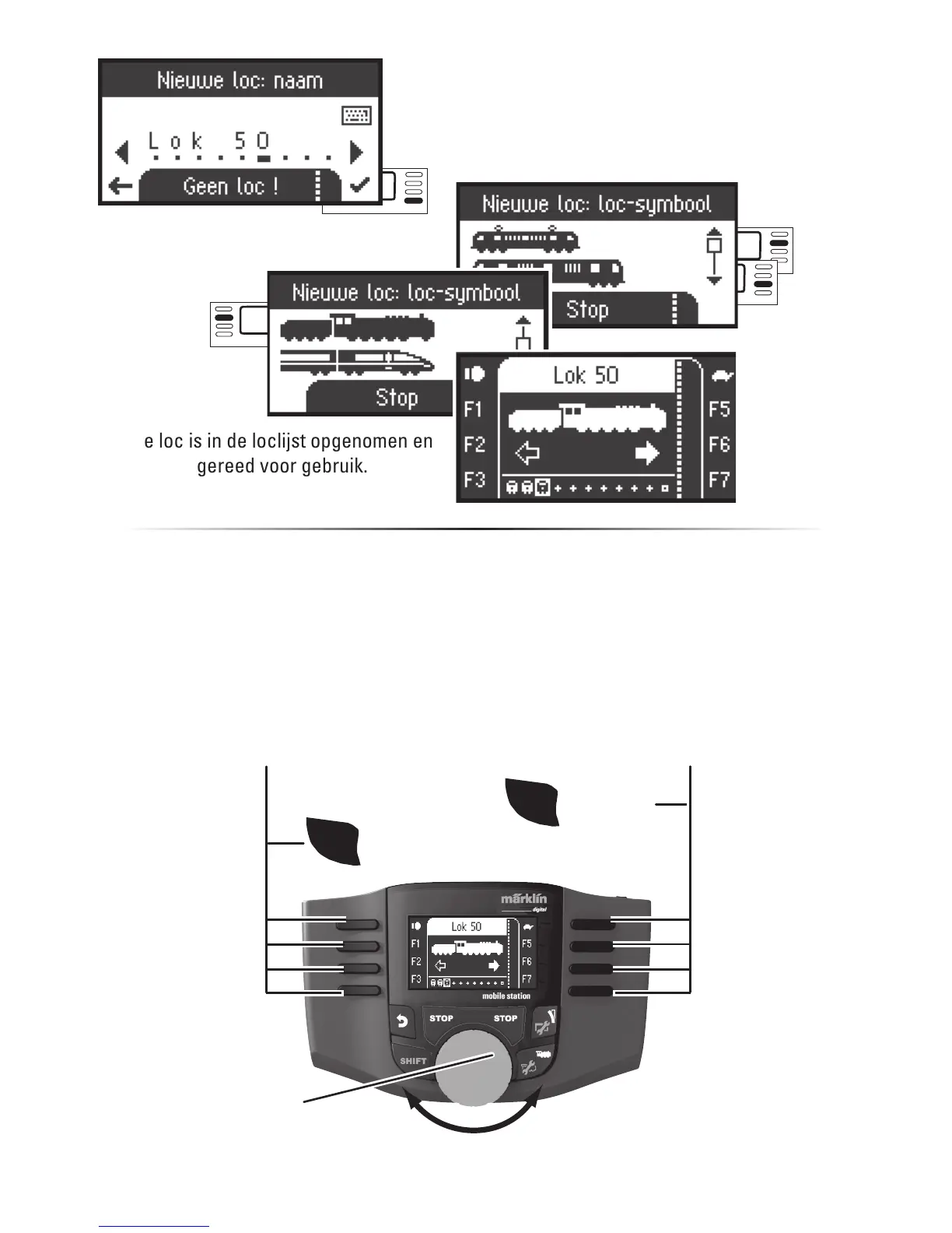Nu zijn de ingevoerde locomotieven met de draaiknop te besturen en de beschikbare