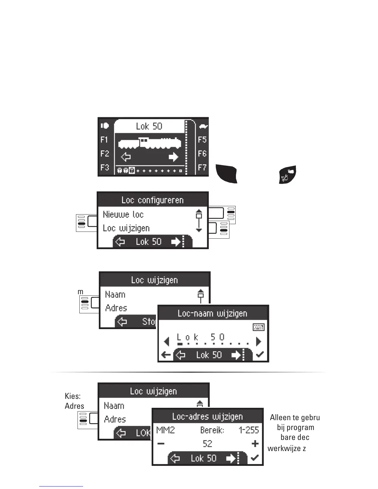 locomotief in dit menu aangepast kan worden, vindt u in de gebruiksaanwijzing van loc of