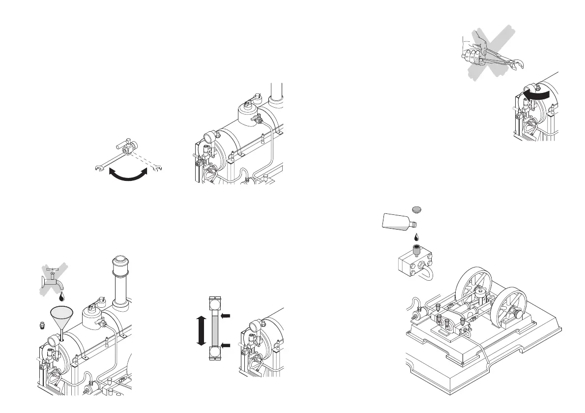 8. Fill the four lubrication cylinders for the steam cylinder up to the top