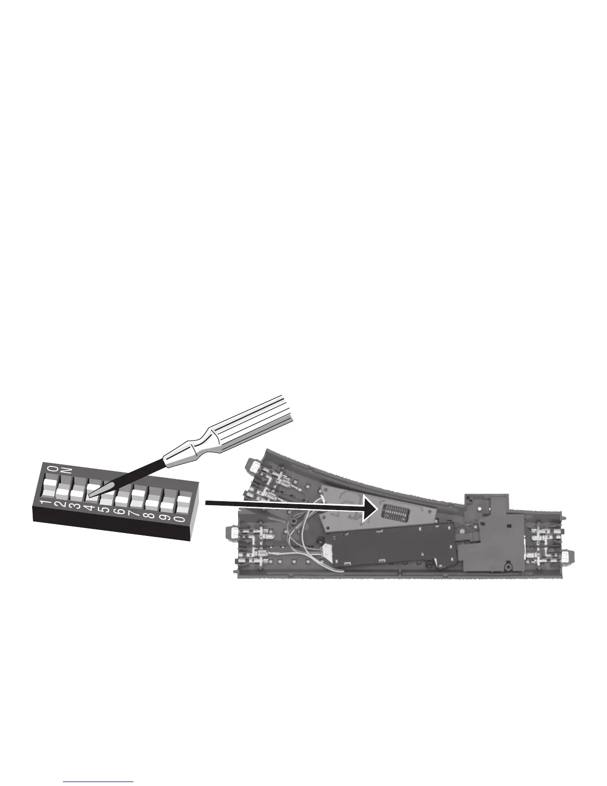 Inställning av nya (eller avlägsnande av gamla) växeldekoder-adresser med hjälp av dekoder-omkopplare.