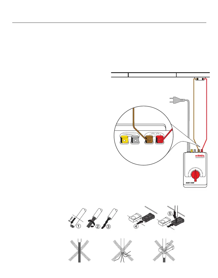 närmaste skena. Den bruna ledningen