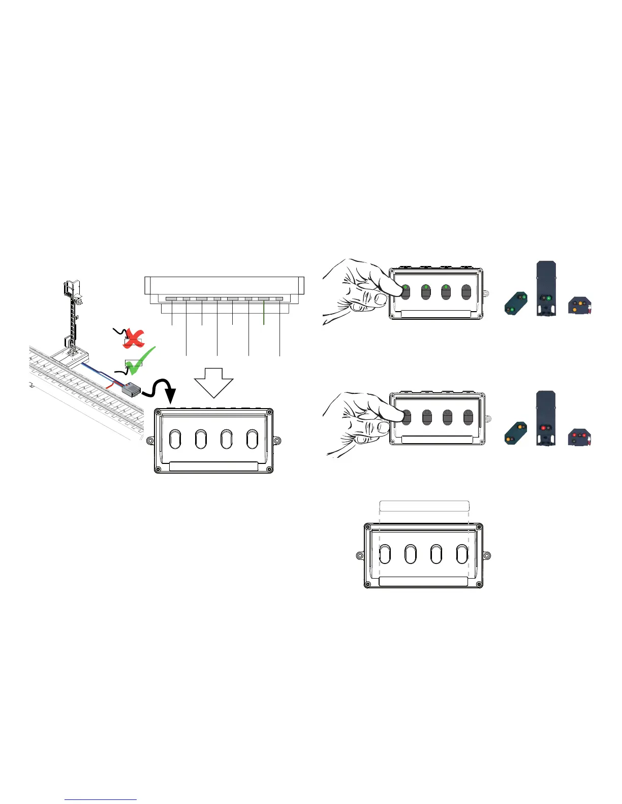 Med tryk på knappen skiftes signalet. Hvis den grønne