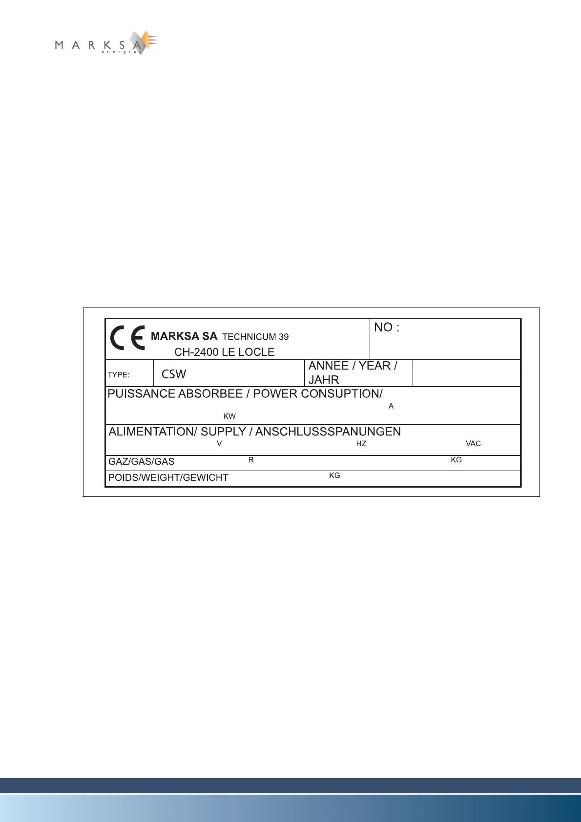 Your refrigeration unit is compliant with directive 98/37/CE from the European Parliament and Council