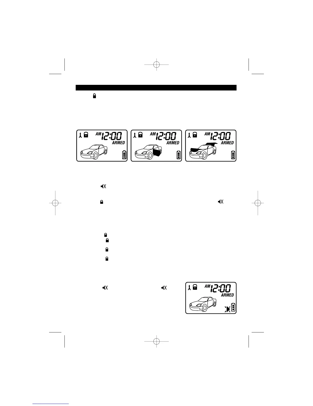Press the ( ) button on the transmitter will arm or disarm your security system. No chirp