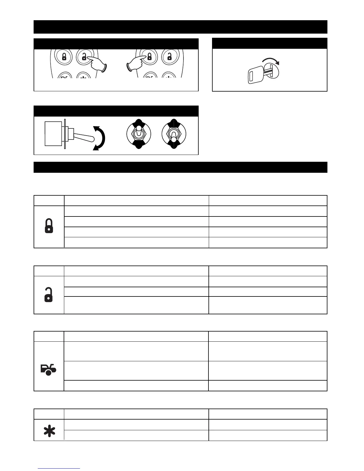 Ignition ON, Door Locking "ON" (Default) 1 Chirp, LED