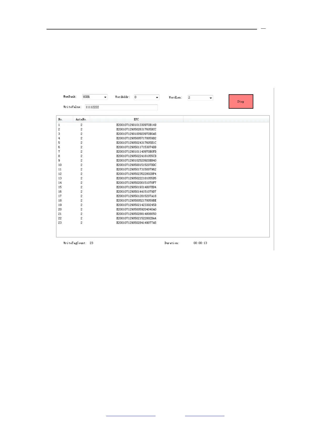 4、Click „Stop‟ ICON to stop the Multi-Tag encoding, at the bottom of the demo