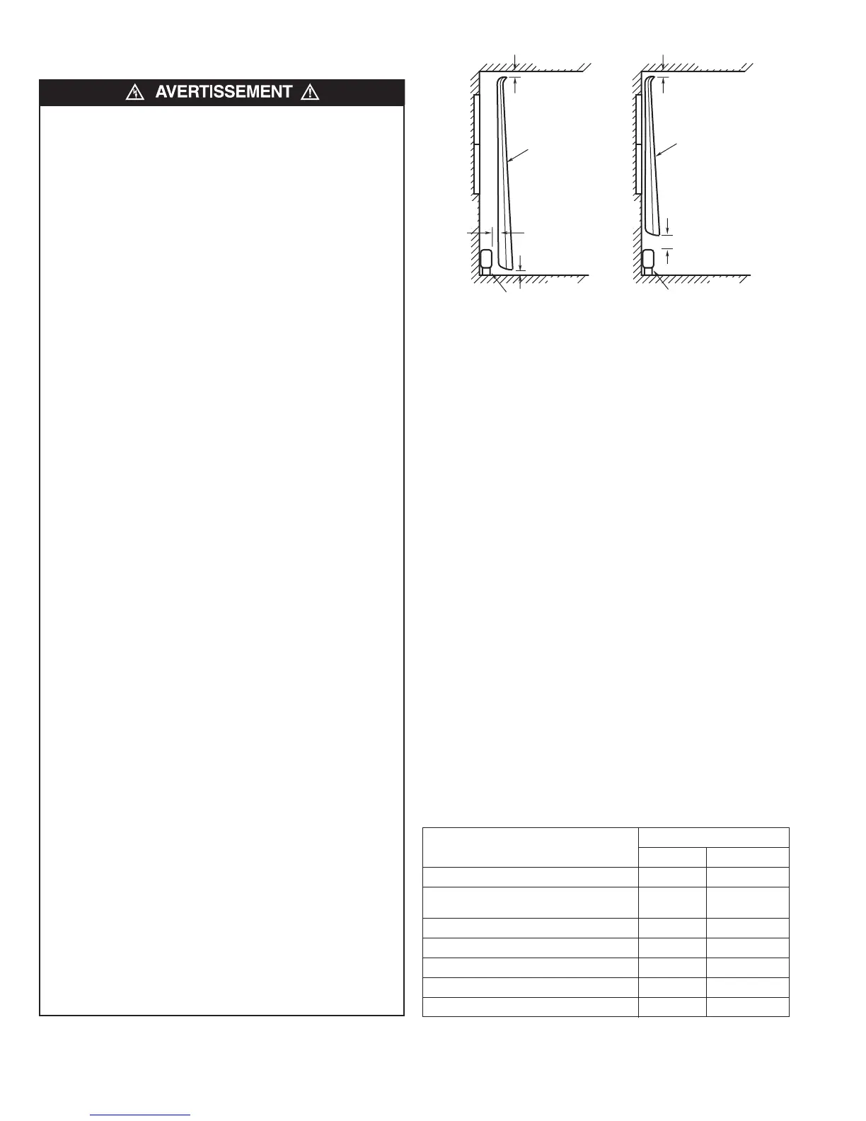 moins un espace de 6” (152 mm) au-dessus du haut du radiateur.