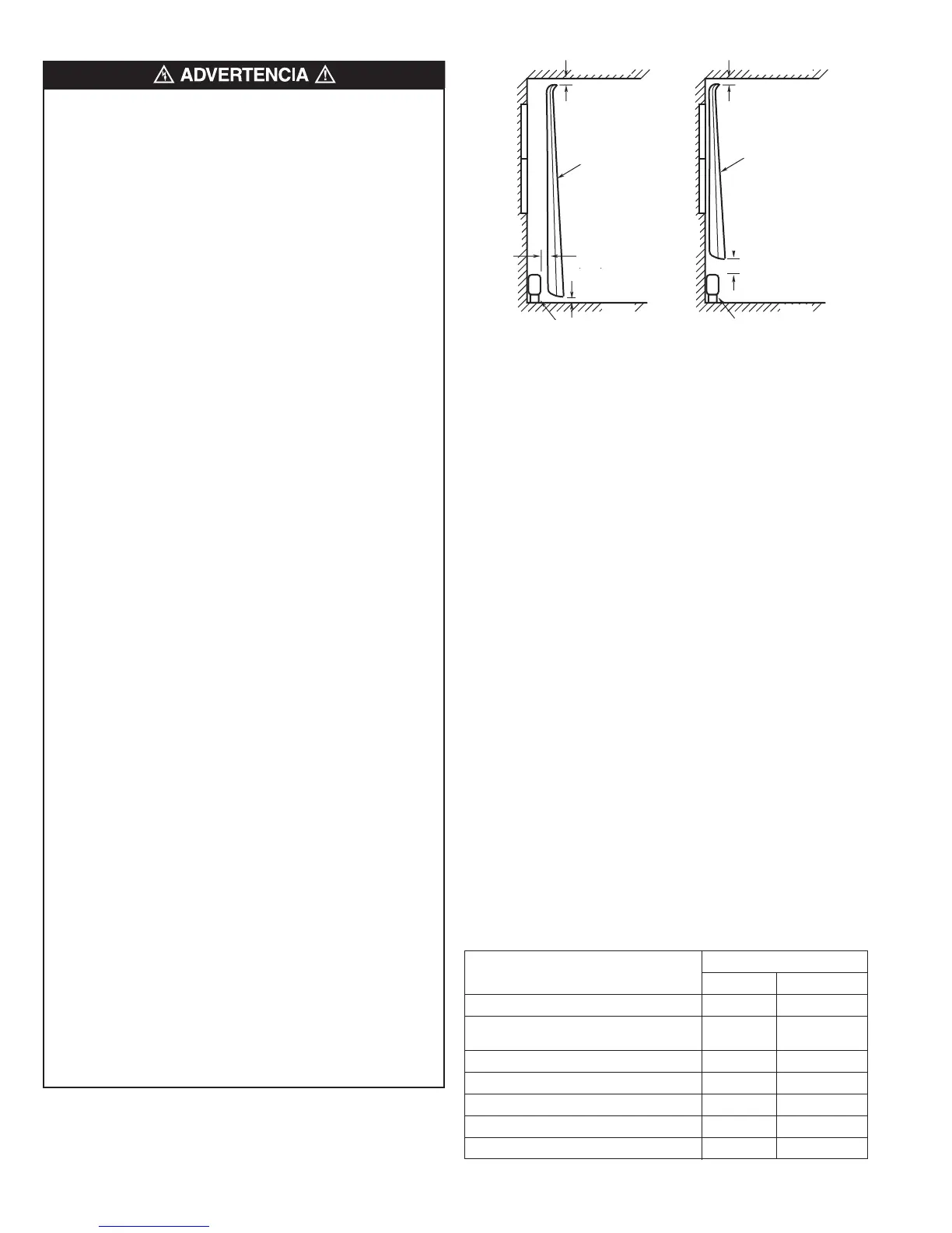 calefactor. Vea los requisitos de espacios libres mínimos en la sec-