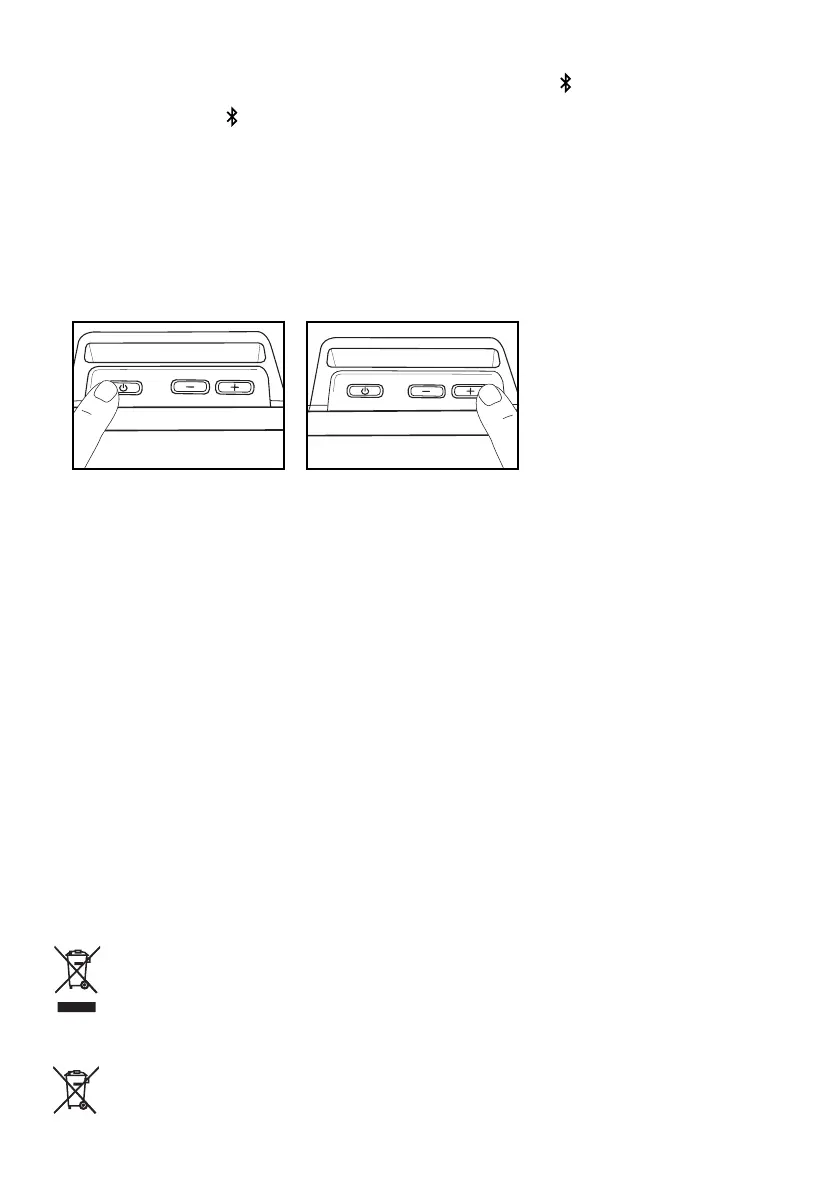 2. Lisää tai vähennä Get Up Stand Up -kaiutinjärjestelmän äänenvoimakkuutta koskettamalla ja/tai painamalla – ja +