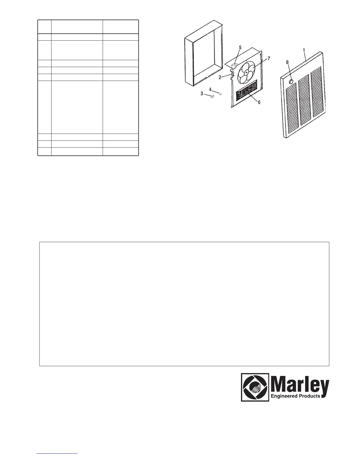 to return products to Marley Engineered Products Service Center. Within the limitations of this warranty, inoperative units should be returned to the