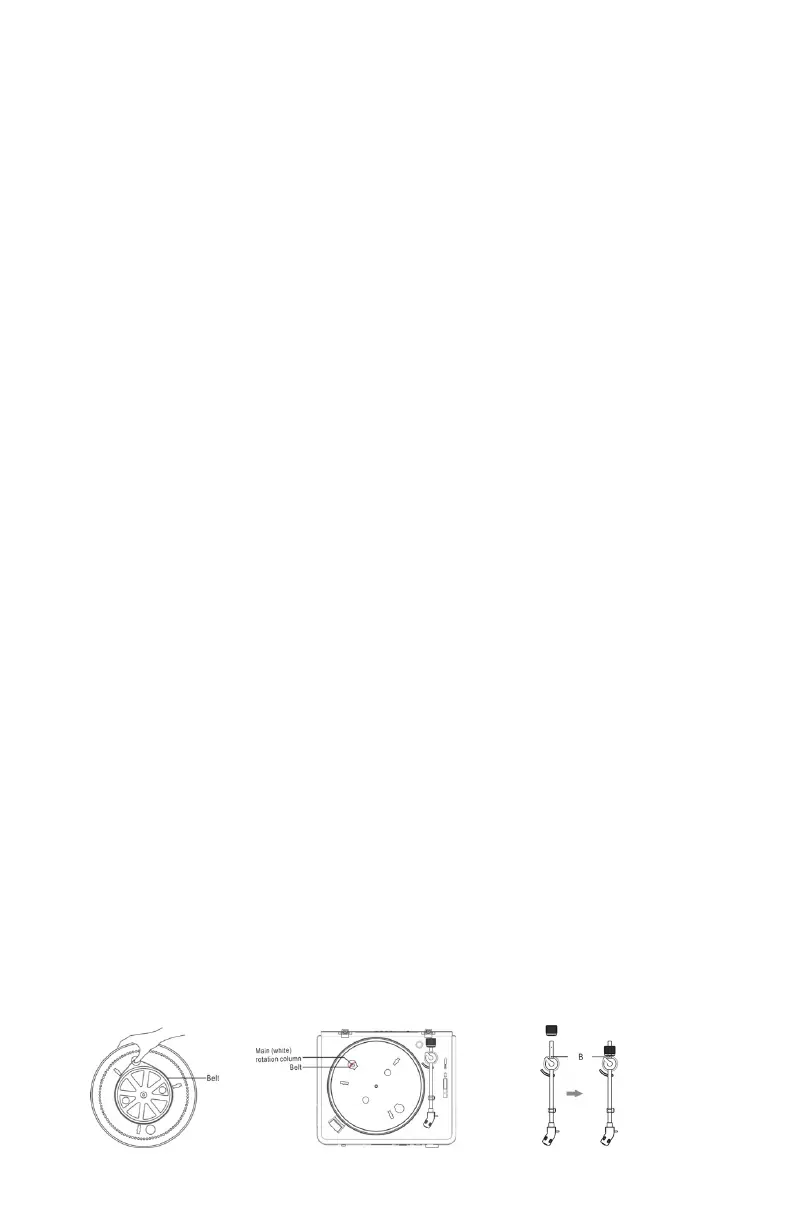 추어 끼우고, 한쪽 끝을 잡고 있던 벨트는 턴테이블 왼쪽에 있는 회전기둥에 맞