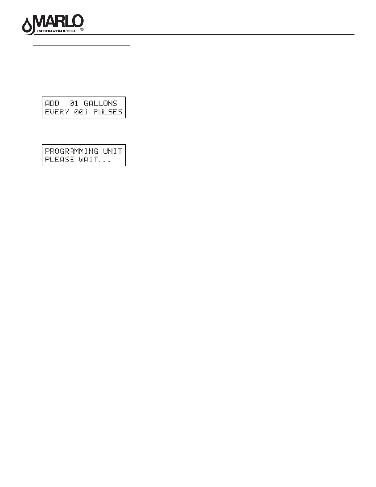 This program step sets the pulses per gallon/liter for generic ow meters.