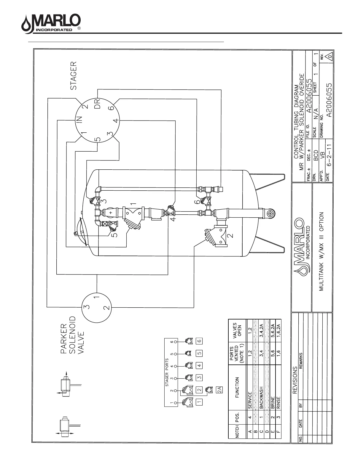 TUBING DIAGRAM - VALVE NEST - MULTITANK - PARKER SOLENOID