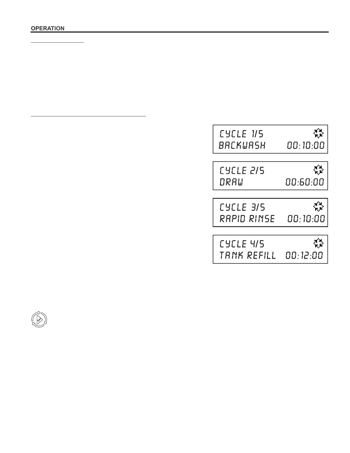 In the Regeneration Cycle step display, the timer shows the current regeneration cycle name the valve is in, or has