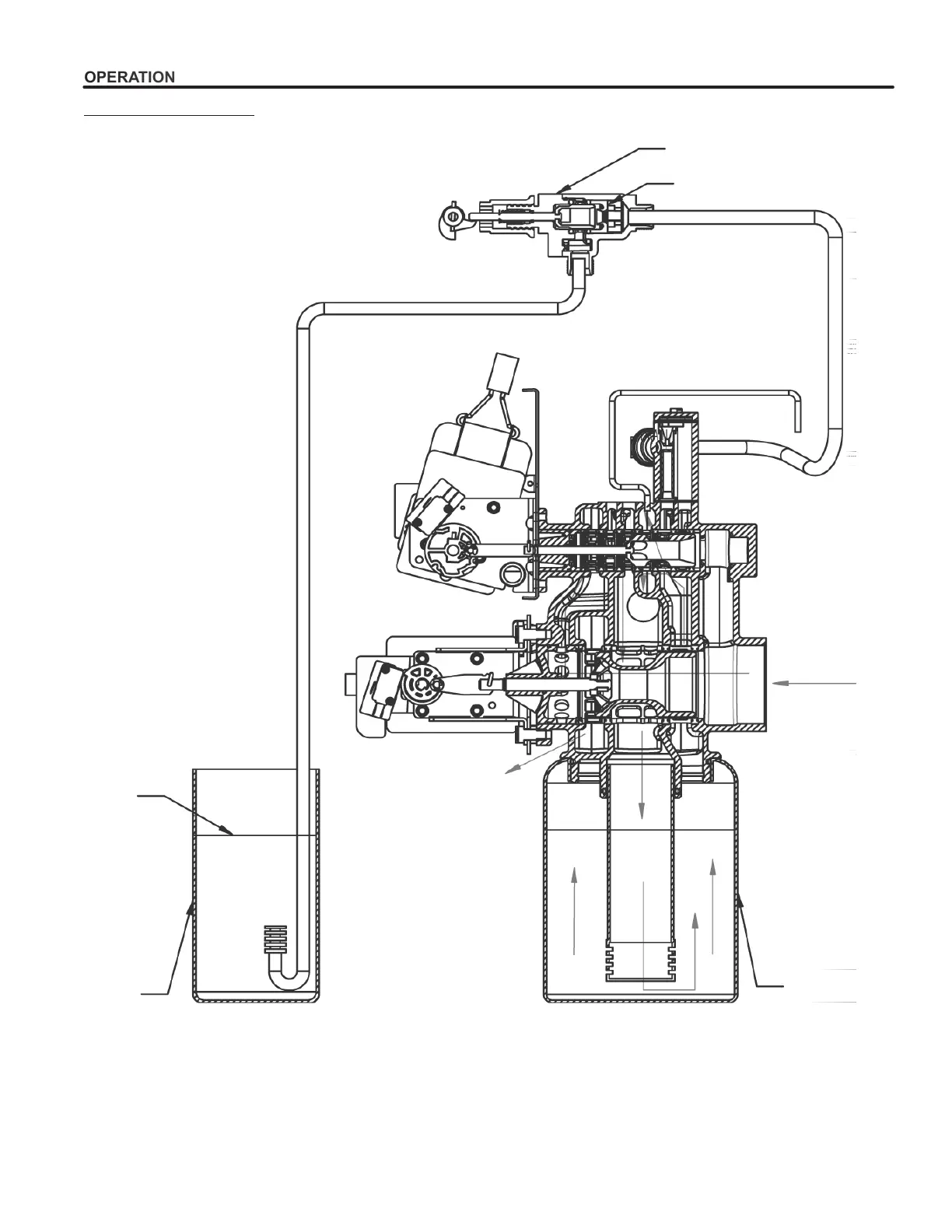 Hard water enters unit at valve inlet — ows to the front passage and up through the front passage to regenerating