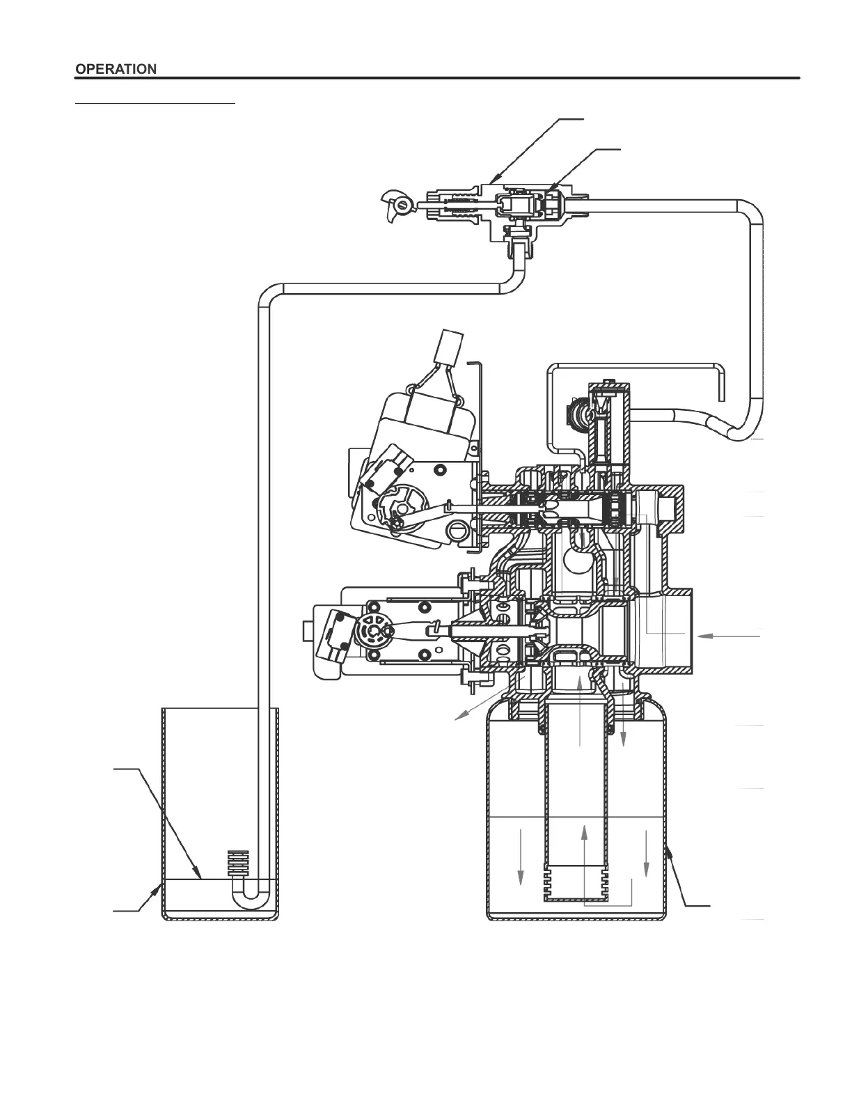 Hard water ows thru the regenerating valve directly down thru the mineral into the bottom distributor and up thru the