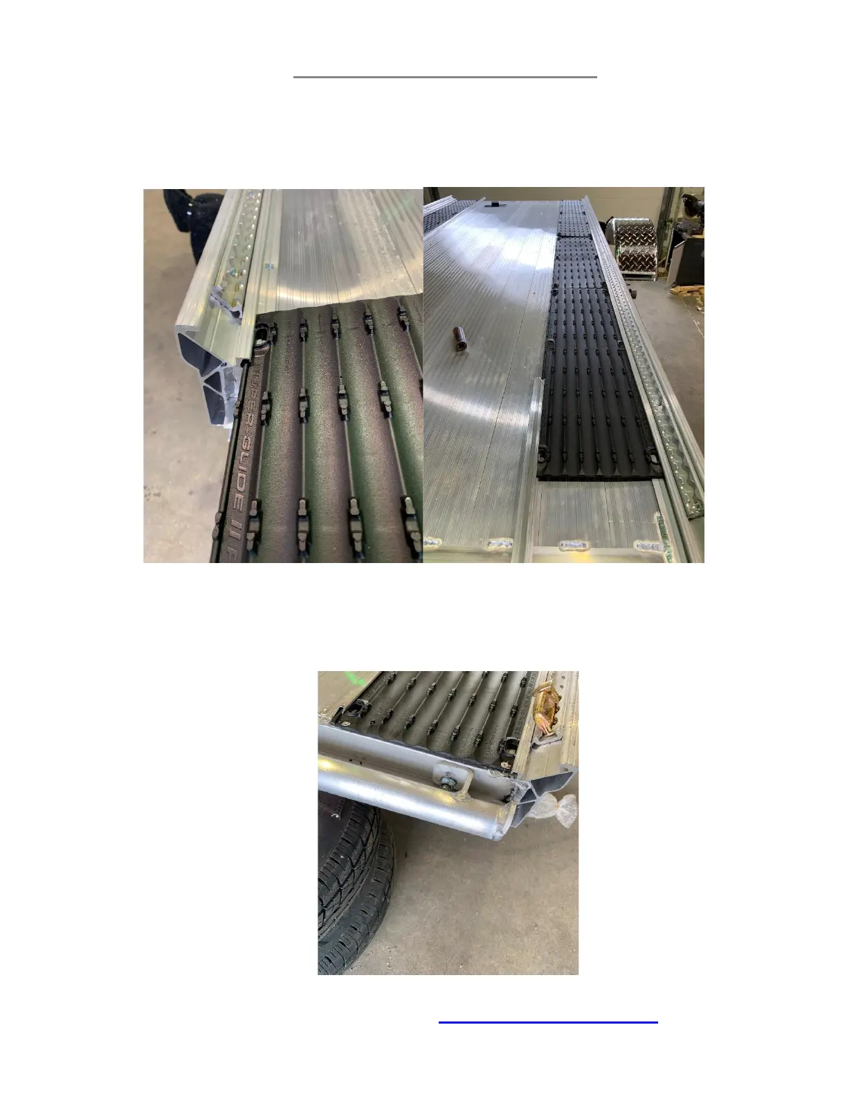 2. Rivet the extrusion down 1 inch from each end. Then starting at the back of the trailer at
