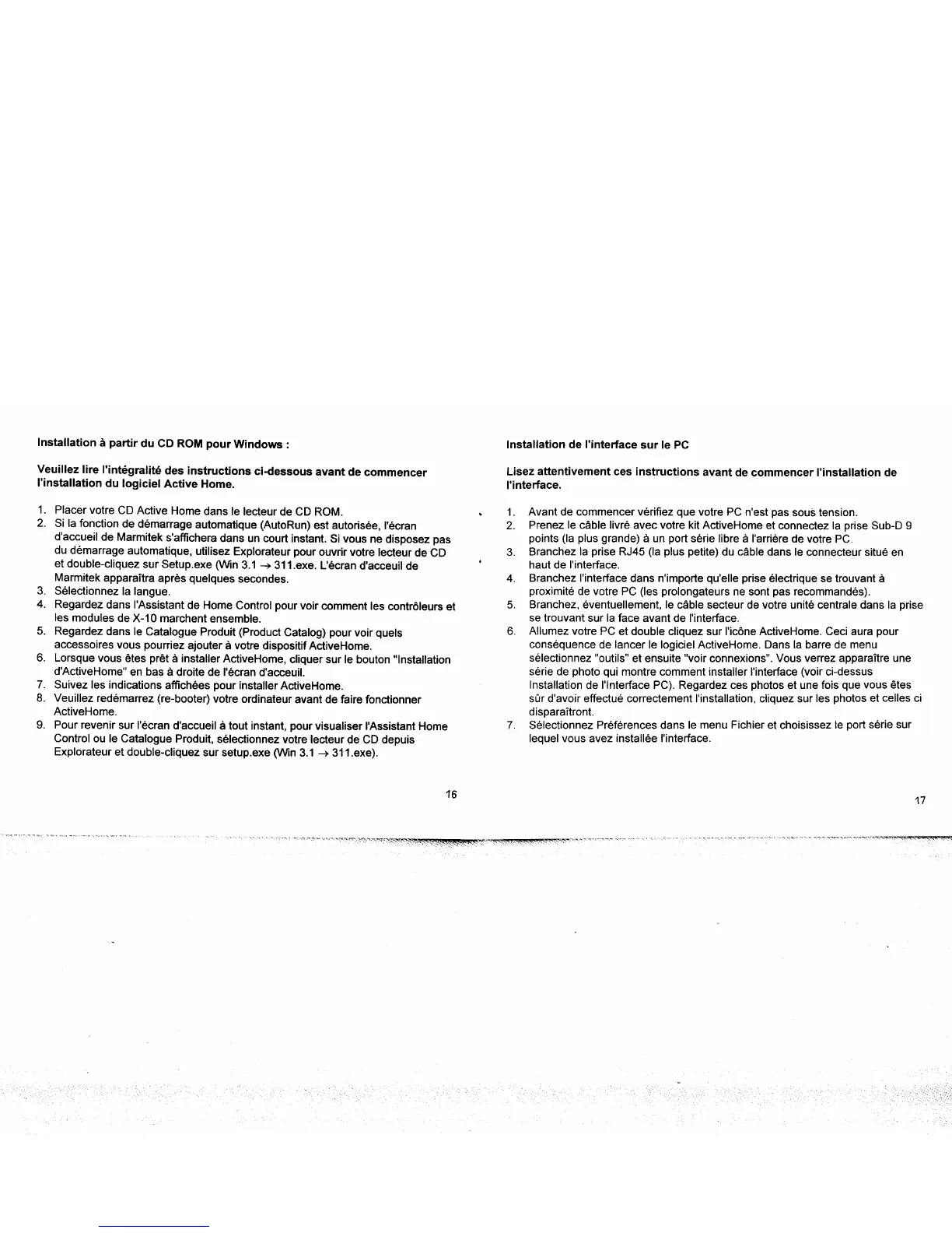 Marmitek activehome - Software Installation (French); Installation from CD-ROM for Windows; PC Interface Installation (French); Connecting and Configuring the Interface