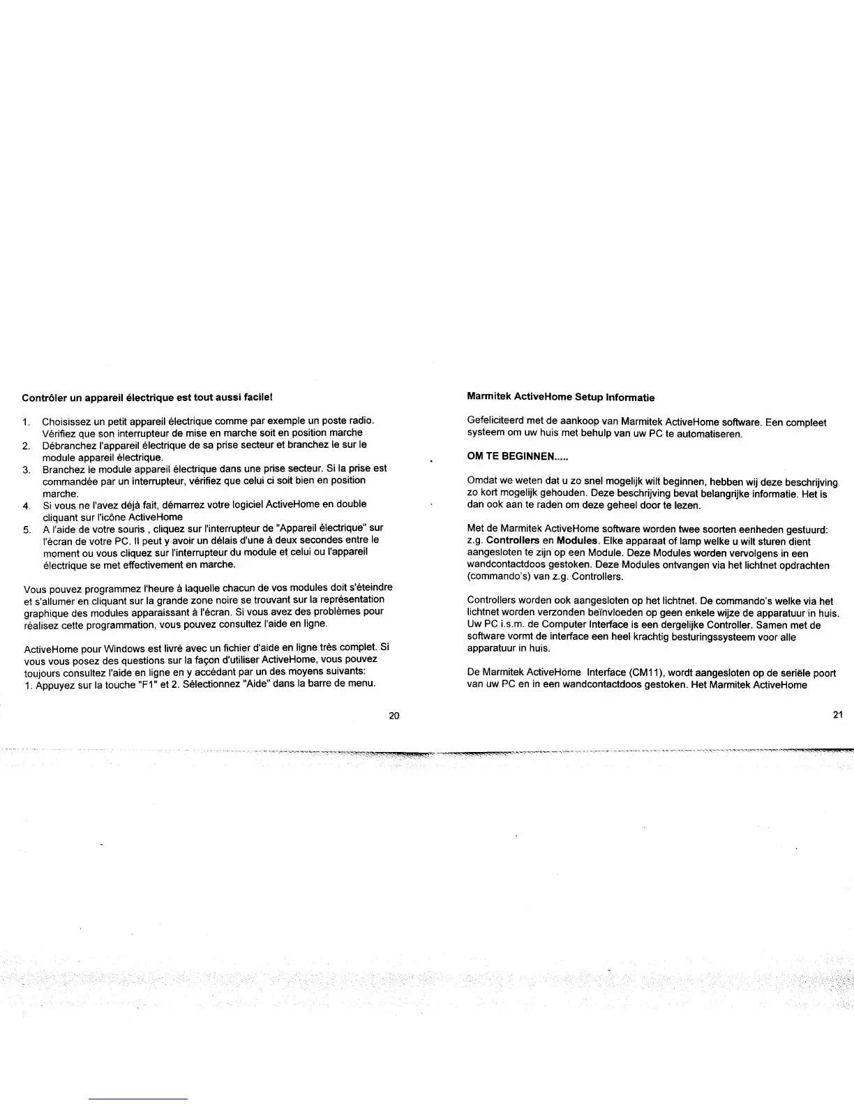 Marmitek activehome - Controlling Electrical Appliances; Appliance Control Steps; Marmitek ActiveHome Setup Information (Dutch); OM TE BEGINNEN.....