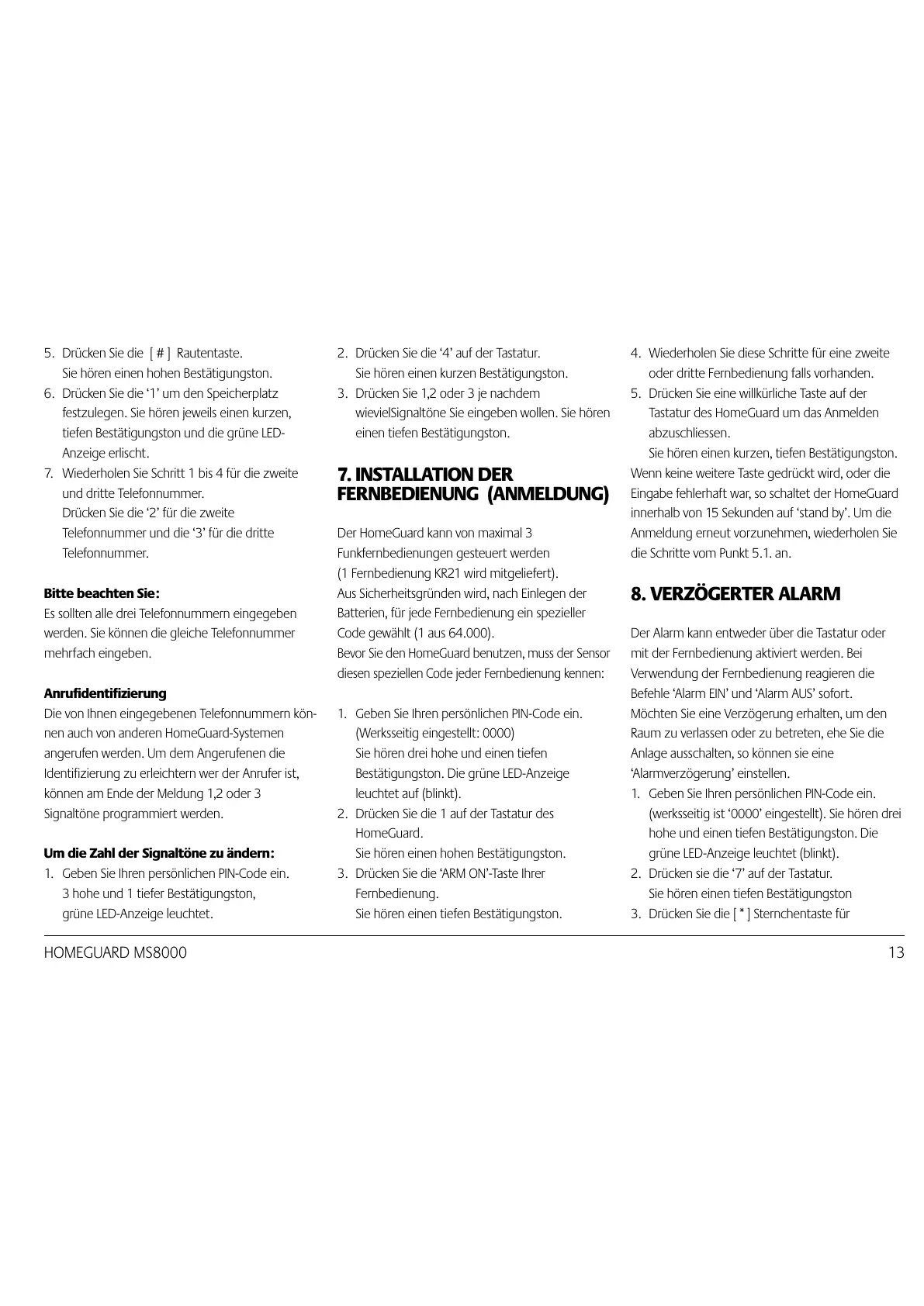 Eingabe fehlerhaft war, so schaltet der HomeGuard
