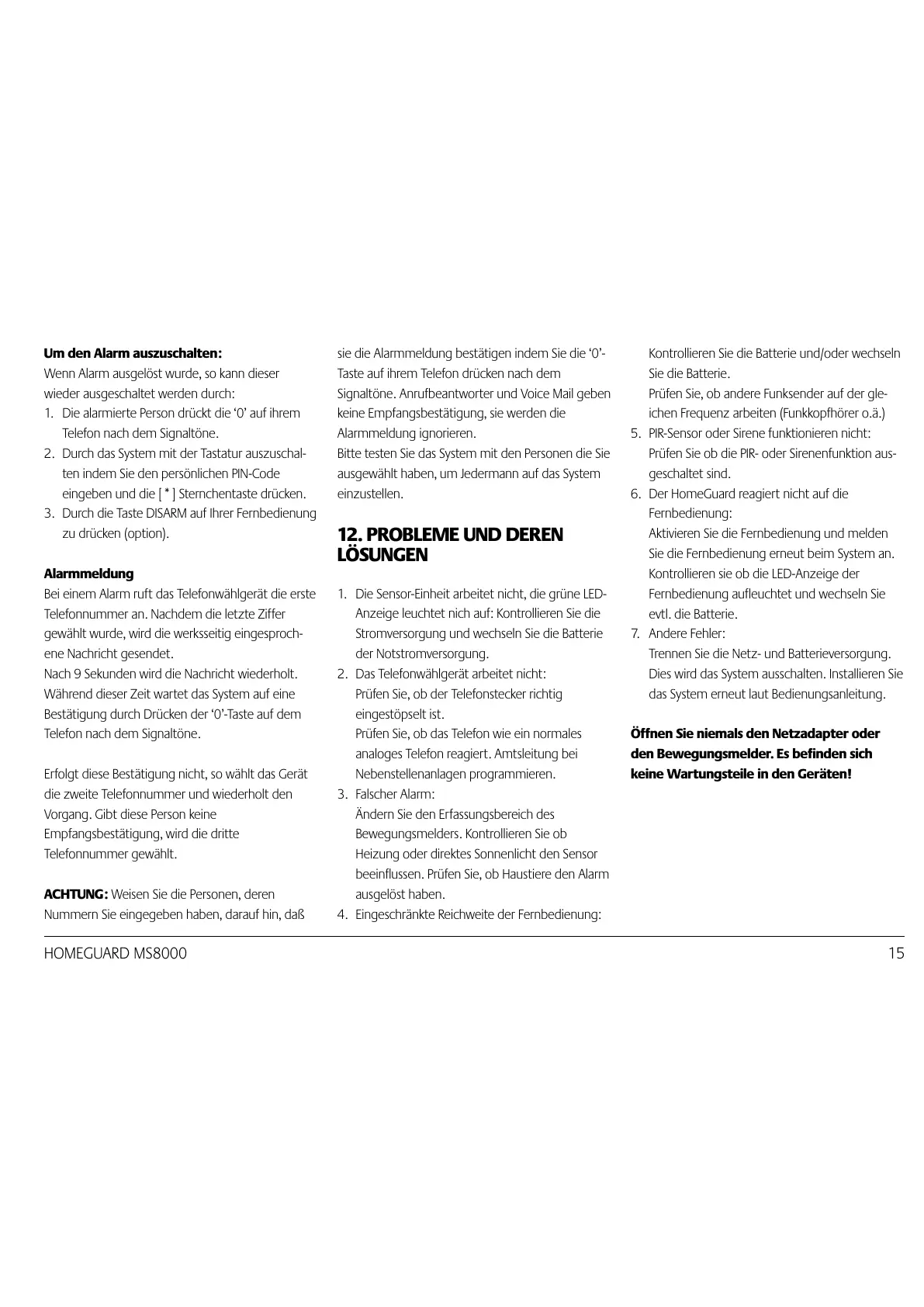 beeinflussen. Prüfen Sie, ob Haustiere den Alarm