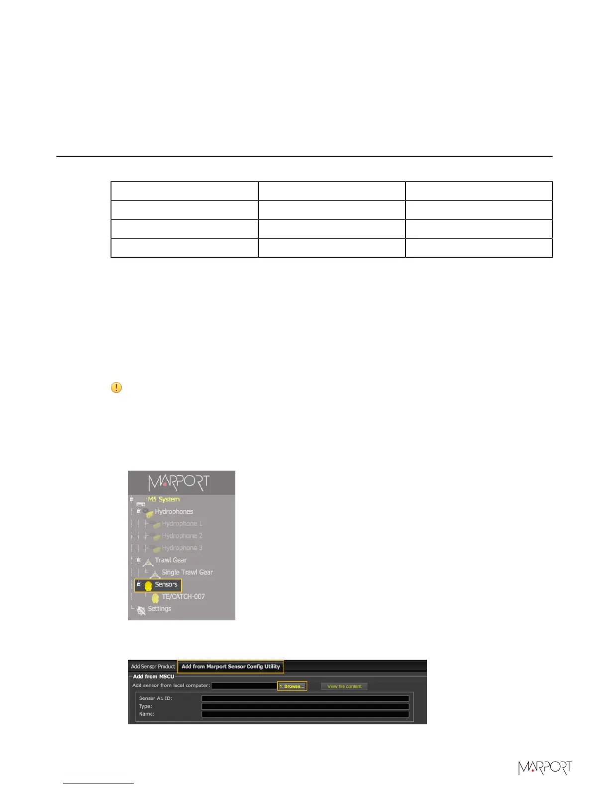 Click the tab Add from Marport Sensor Config Utility.